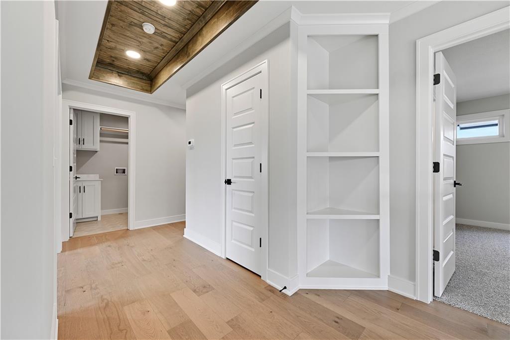 LOT 36 / Gabriel Homes' Makenna II Floor Plan. This 5 bed 4 full bath 2 story home welcomes guest with a stunning open main level! The Contemporary front elevation is elegantly modern! The openness and natural light invite family and friends into the center of the home. The Great room’s fireplace is flanked by built-ins, the perfect place to display books, art or other treasured possessions. From there, continue into the fully equipped kitchen with an oversized window over the kitchen sink that lets in plenty of light. Abundant upper and lower cabinets offer plenty of storage space for dishes, glassware and cookware. The kitchen also includes a large walk-in pantry, with abundant storage and shelving throughout. Welcome to another stunning Matt Adam Development new home community. The Sanctuary is laid out to protect the natural landscape, with homesites among the most beautiful in the area. In addition to the nature trails and sparkling creek winding its way through the community, residents will enjoy neighborhood amenities such as the Resident’s Club with indoor spaces and outdoor entertainment area, and a separate zero-entry pool with a sundeck to lounge the summer away. Two pickleball courts will provide hours of fun exercise for the everyone in the household! Located in South Johnson County across the street from award-winning Blue Valley Schools. Contact us soon to personalize this Makenna II floor plan today! Square footage and taxes are estimates. Finished photos are of a similar model, pricing, upgrades and finishes may vary from model shown.