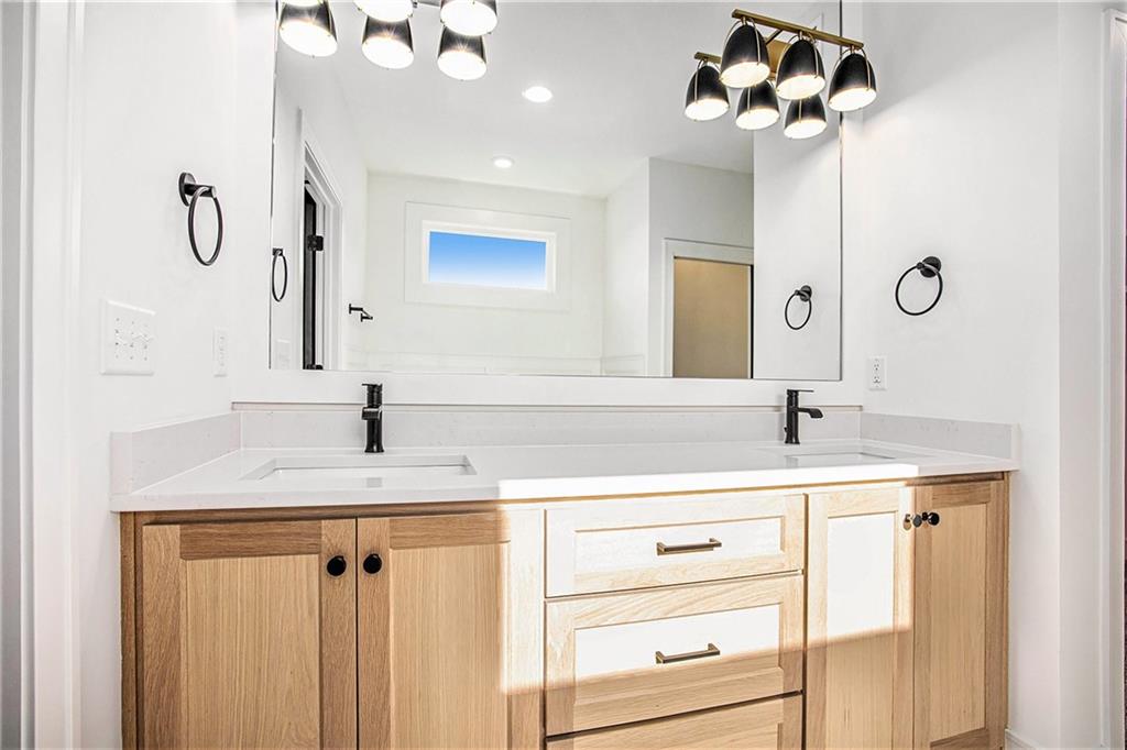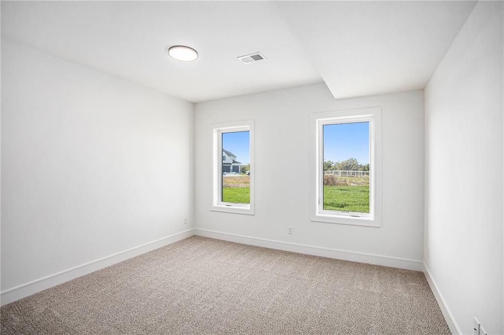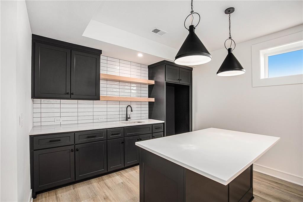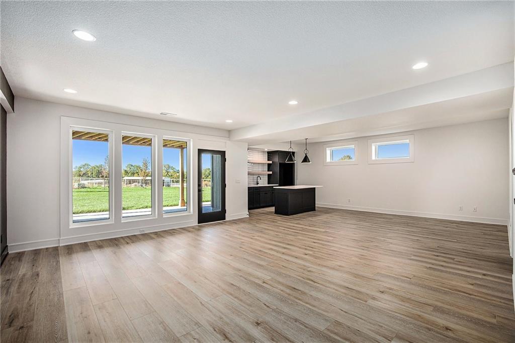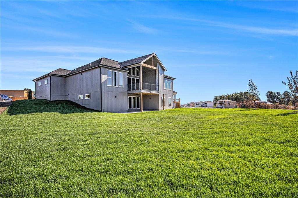 MOVE IN READY -- "The Bayberry I" by JFE Construction located on Lot 90 is a 4 bed, 3 bath Reverse 1 ½ Story. From the moment you walk-thru the 8' double doors you will be amazed. The great room with a vaulted ceiling, floor to ceiling fireplace, and a wall of windows provides a spacious open feeling. Large slider doors from the great room expands your entertainment space to the covered deck w/stone fireplace. Kitchen boasts a large island with quartz tops, stainless appliances, and a large pantry with built in coffee bar. Primary ensuite includes a free-standing soaker tub, double bowl vanity, zero entry shower and walk-in closet. 2nd bedroom or office on the main. The finished lower level includes a family room, wet bar with island, and 2 additional bedrooms and a full bath. Minutes from Blue Valley K-12 schools. Photos include a rendering of the Bayberry. The final home may vary. Any additional photos show the current state of the actual home. Taxes are estimated. Models Open Daily, 11 am – 5pm, and Sunday, 12-5pm. Visit the sales office at 12411 W 183rd Terrace, Overland Park. THIS HOME IS MOVE IN READY.