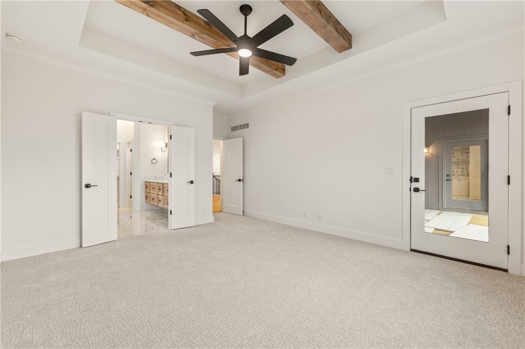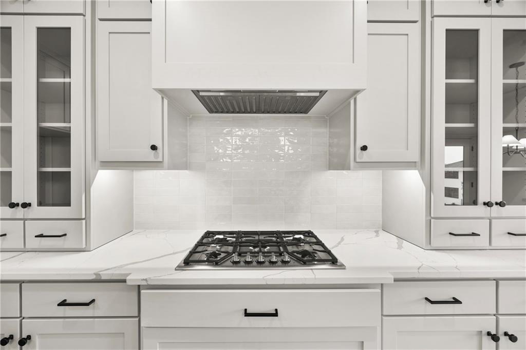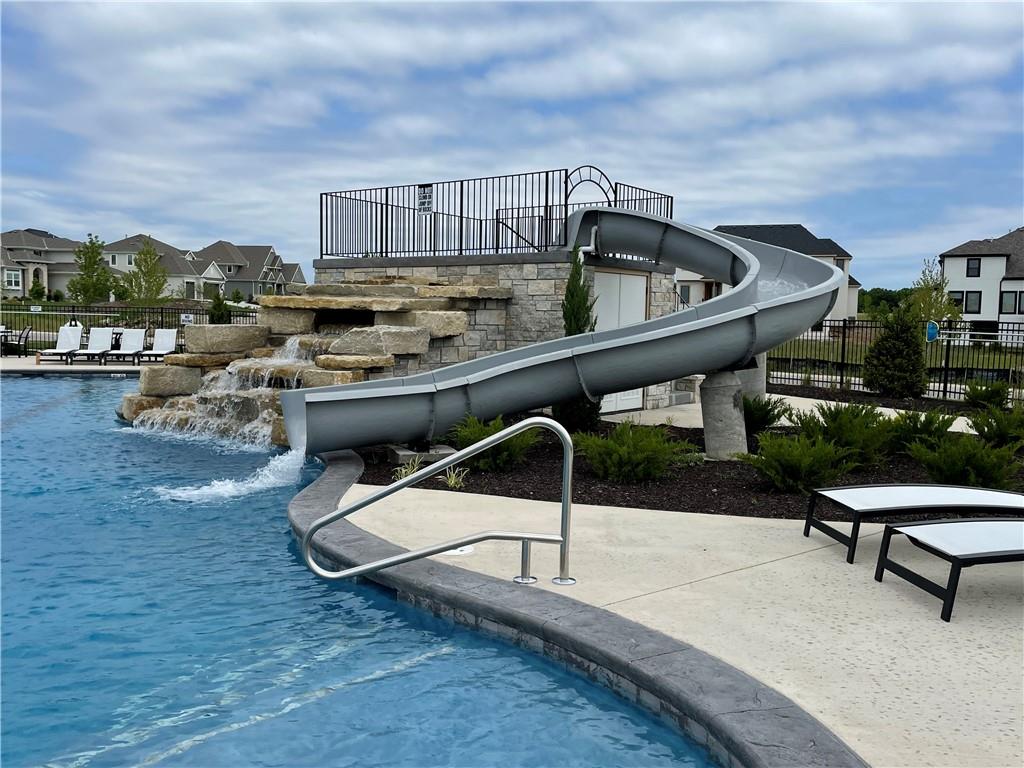 MOVE IN READY! The modern Riviera REVERSE by SAB Homes located on lot 184 in a cul-de-sac with a full finished walkout basement. You will love this new modern twist to a classic reverse floorplan at just over 3000 square-foot. with spectacular curb appeal featuring high peaks, vertical accent siding, metal accent roof, blackened bronzed windows, and super dark charcoal paint with red brick trim. Stunning! This home also features an ideal plan floor plan with a main floor primary suite and an office/ second bedroom with access to the covered 16' x 12' deck from the dining room and bedroom. Enjoy the finished walkout lower level with two more bedrooms, large family room with LVT flooring, parallel wet bar and a door to the backyard, plus plenty of room for storage. Perfect outdoor space under a 16' x 12' covered patio with full sod front and back, sprinkler system and front landscaping package included. This home is loaded with upgrades; gas cooktop, quartz countertops, decorative bath mirrors, Maxx Lounge freestanding tub, bump out in the dining area for hutch or china cabinet, boot bench at garage entry, large windows, floor to ceiling tile fireplace with accent ceiling trim in great room, vertical shiplap accent wall in the office with 3 ceiling beams, wainscoting at entry and stairwell and light wood flooring. Century Farms has a spectacular club house with a farmhouse twist ideal for neighborhood gatherings or private parties with reading loft and a fitness center. There are plenty of neighborhood activities with a fire-pit, two pickle-ball courts and a basketball hoop, kids play area, wildflower walkways and a community garden. Century Farms is conveniently located near the brand new Bluhawk shopping center, Heritage Park, the Johnson County Trail system and the Overland Park Arboretum. Come join the fun in Century Farms, a unique one of a kind upscale new home community in Overland Park. BLUE VALLEY SCHOOLS