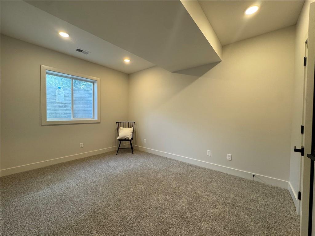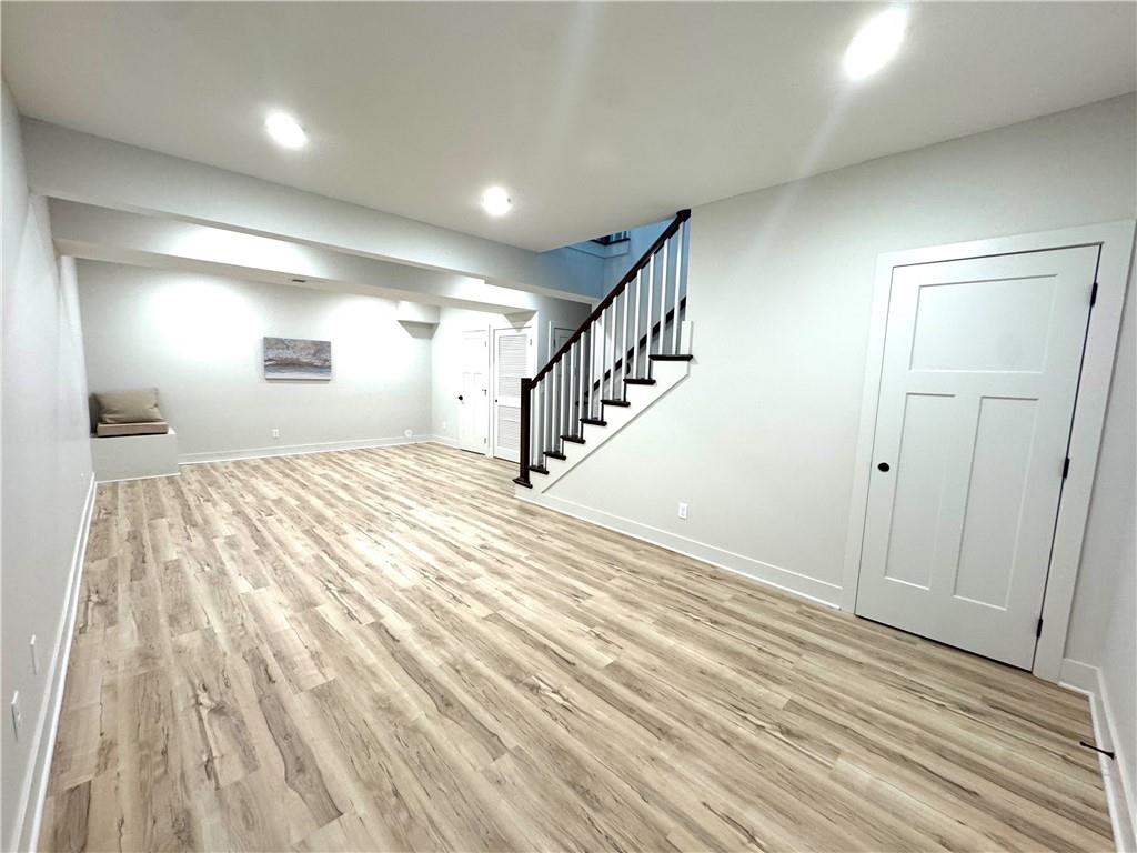 Welcome to this charming cottage new construction in the heart of downtown Lee's Summit-Rated top 10 in the Nation! AND Green street indoor farmers market is now open! This is a rare find to have brand new build in a quiet, cute neighborhood a short walk from all downtown has to offer with shopping, restaurants, and entertainment. This cottage opens up to soaring ceilings with beautiful wood beams in an open floor plan for living room and kitchen. Kitchen with quartz countertops has island with modern lighting and large pantry with walkout to patio in a huge back yard. Laundry off the kitchen and two bedrooms each with their own full baths. Lower level has huge family room, full bath and 2 bedrooms. This one will go fast so don't miss out on a one of a kind property! Picture renderings not the actual house color- off white body with white and grey stone and cedar beams. Home almost completed, still waiting on sod and landscaping but come check out the inside which is 99% done.