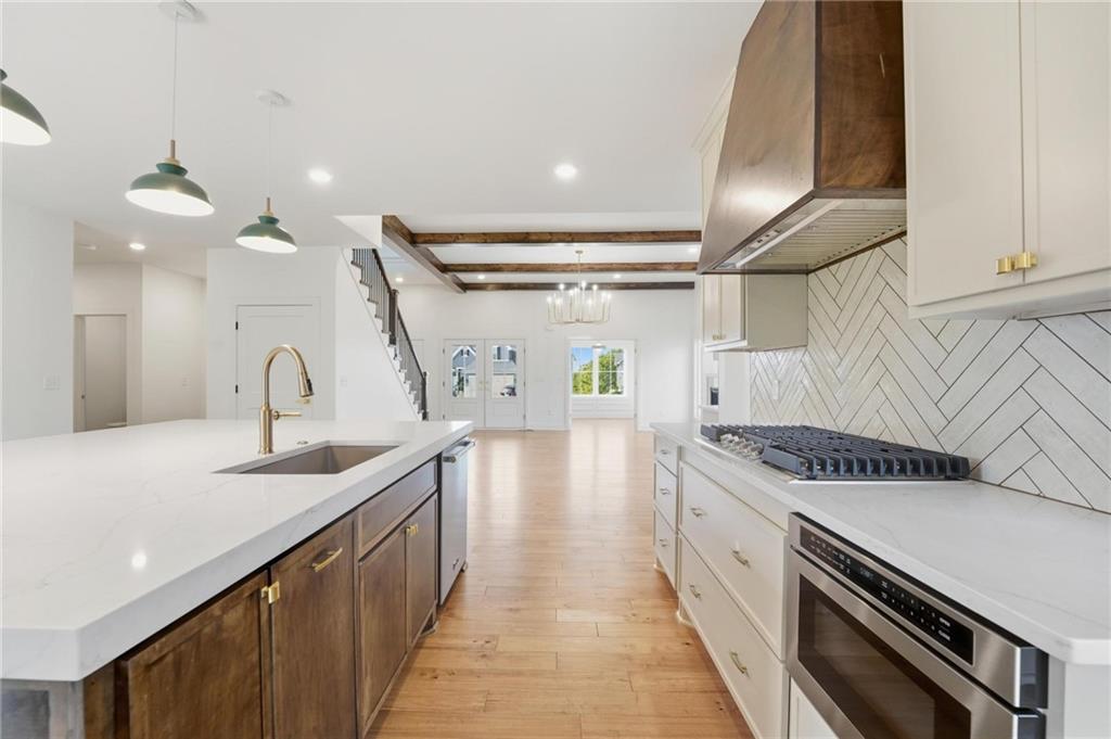 Luxurious Finishes at The National! Designer lighting, Pecan flooring, large format tiles, high-end countertops, stained cabinetry and beams, upgraded flooring, dual-zone heating and cooling, grill patio and covered patio, large lot at the end of a cul-de-sac. The kitchen is equipped with a 36" gas cooktop, a drawer microwave, and as a builder bonus, a full-sized fridge and freezer are included! The scullery provides additional prep space and storage, featuring a full-sized sink and open shelving. The main-level master suite offers a truly spa-like bathroom, complete with an oversized glass shower, a soaking tub, a vanity area, and stunning Taj Mahal Quartz countertops—typically found only in custom homes! The master closet features floor-to-ceiling built-ins and connects to the laundry room, which includes a sink and quartz countertop. The second-story loft adds extra living space with all bedrooms featuring walk-in closets and private access to ensuites—no more sharing! The main level office boasts elegant glass French doors. Enjoy a wet bar complete with a beverage fridge and floating shelves. The expansive lower level includes a suspended garage, all situated on a cul-de-sac lot with neighboring land owned by the HOA. Enjoy easy access to the subdivision pool and play area! Located in the Park Hill School District and part of a golf cart community, this home provides additional perks through social and golf club memberships to The National.