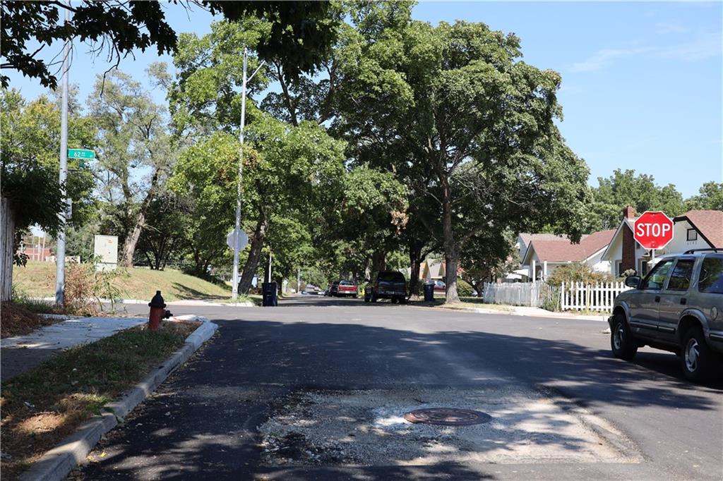 Cute Ranch with wide front porch. Decorative faux fp in LR, hdwds, Lots of storage with lg closet in LR and walk-in closet in BR, a butler's pantry/breakfast nook off kitchen and full unfinished bsmt. Crown molding in LR and DR. Mud room off kitchen. Washer & dryer in bsmt stays. Old roof completely torn off and new roof installed in May 2023. Off street parking and fenced backyard. Easement granted by 6205 for driveway and backyard access. 6207 and 6205 are both listed for sale. and can be sold separately or bundled.