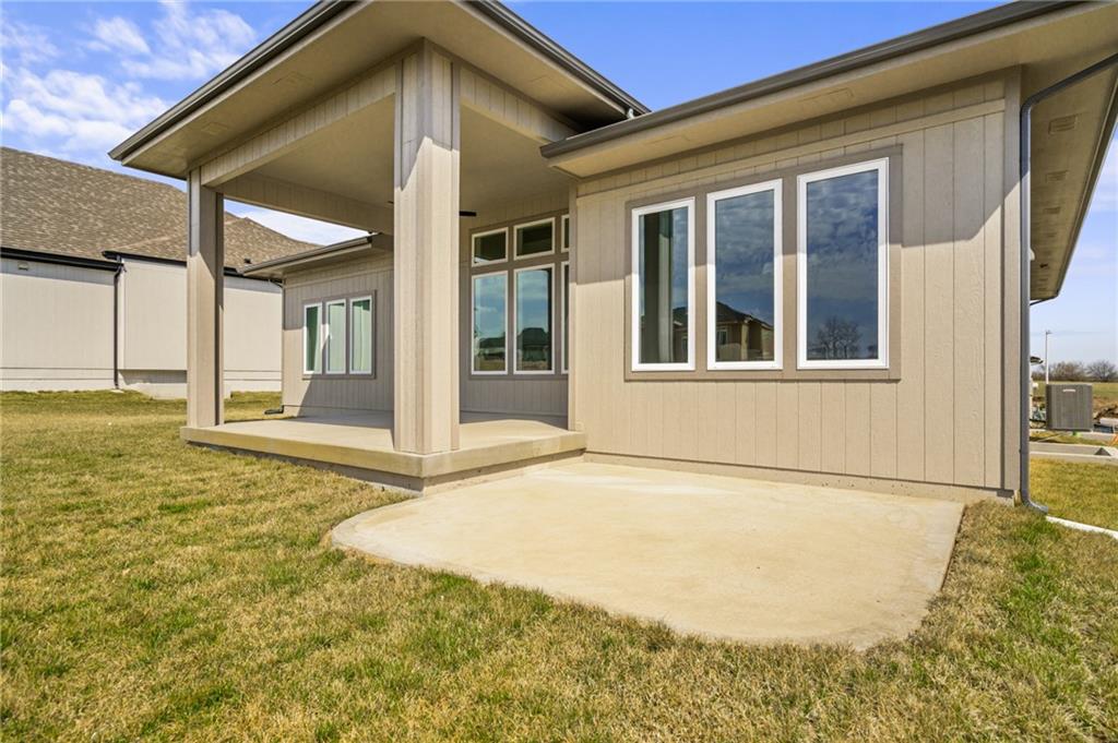 Discover the "Sicilian II" from Pauli Homes — a contemporary take on the ever-popular "Riviera" floor plan. It preserves the style and functionality you love while fitting into a more compact, intelligently designed footprint. The bright, open main level spans 1,826 square feet and is built for effortless daily living and effortless entertaining. It features a generous great room that flows naturally into a stylish kitchen anchored by a large island — ideal for meal prep, casual dining, or hosting friends. Abundant windows surround the dining area, bathing the space in natural light. The luxurious primary suite offers a true retreat, complete with a spa-like bathroom featuring a freestanding tub, dual quartz vanities, and a spacious walk-in shower. Laundry is conveniently accessible from both the primary closet and the main hallway. Downstairs, the finished lower level delivers an impressive 1,294 additional square feet of versatile living space, including a recreation room, a walk-up wet bar, a flexible bonus room, two bedrooms, a full bathroom, and abundant storage options.  Come see this gorgeous home in Olathe's newest maintenance provided community! Maintenance includes: lawn, trimming, mulch, sprinkler system & snow removal.