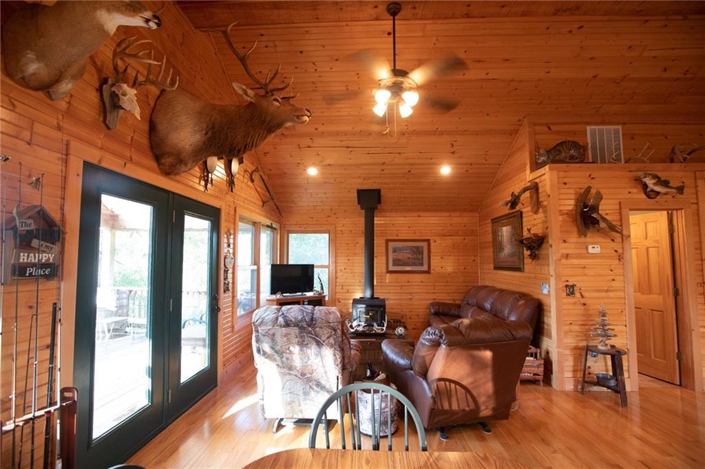 Welcome to this stunning 220 +/- acre farm nestled in the heart of Polk County, Missouri, just south of the beautiful Pomme de Terre Lake. This exceptional property offers the perfect blend of privacy, recreation, and functionality, featuring a secluded, fully furnished cabin tucked away among mature oak and hickory hardwoods. With rolling terrain and panoramic views, the land is as picturesque as it is productive, making it ideal for both outdoor enthusiasts and those seeking a peaceful retreat. The property boasts a well-established trail system, making it easy to explore every corner of the landscape, whether for hunting, ATV riding, or checking trail cams. Stinking Creek meanders through the acreage, adding both charm and natural water resources, along with a scenic pond complete with a dock for fishing and relaxation. Wildlife abounds, with excellent deer and turkey hunting opportunities right out your back door. Two well-waterers support both cattle and local wildlife, and native plus cool-season grasses offer strong grazing potential. A small barn, tractor, and implements are included in the sale, making this a turnkey setup for your recreational desire, livestock, or hobby farming. Whether you're looking for a hunting getaway, a working farm, or a serene hideaway near the lake, this property delivers it all.