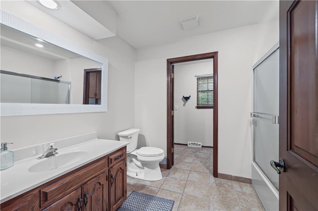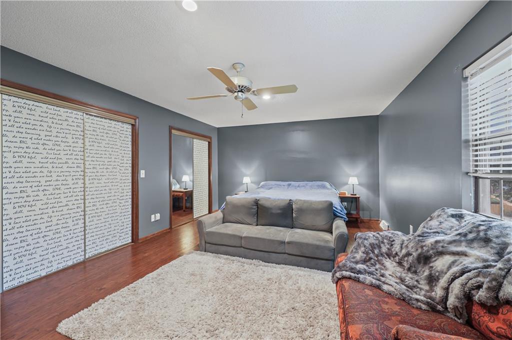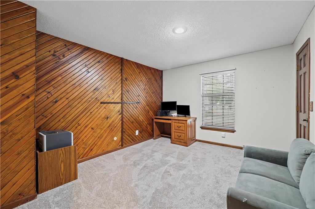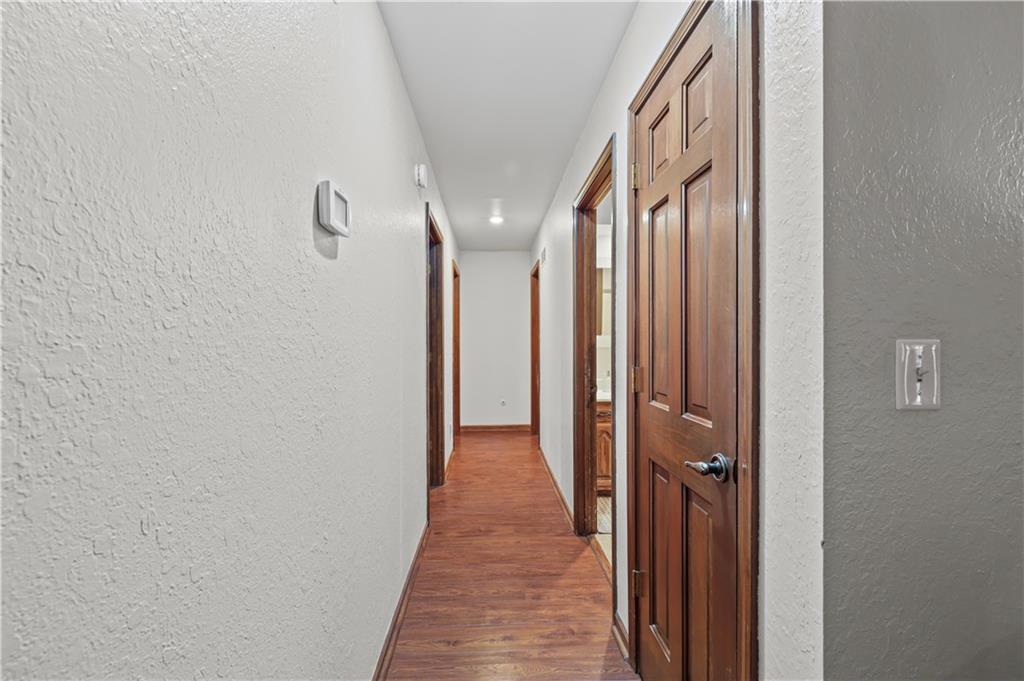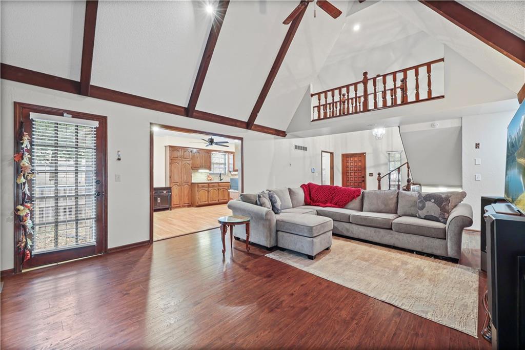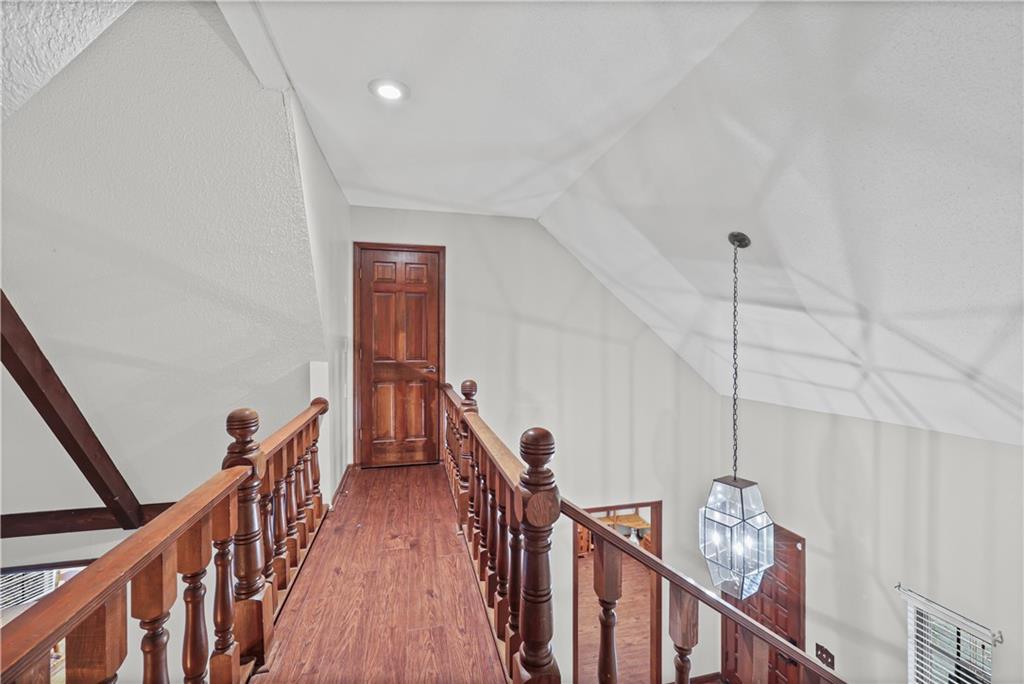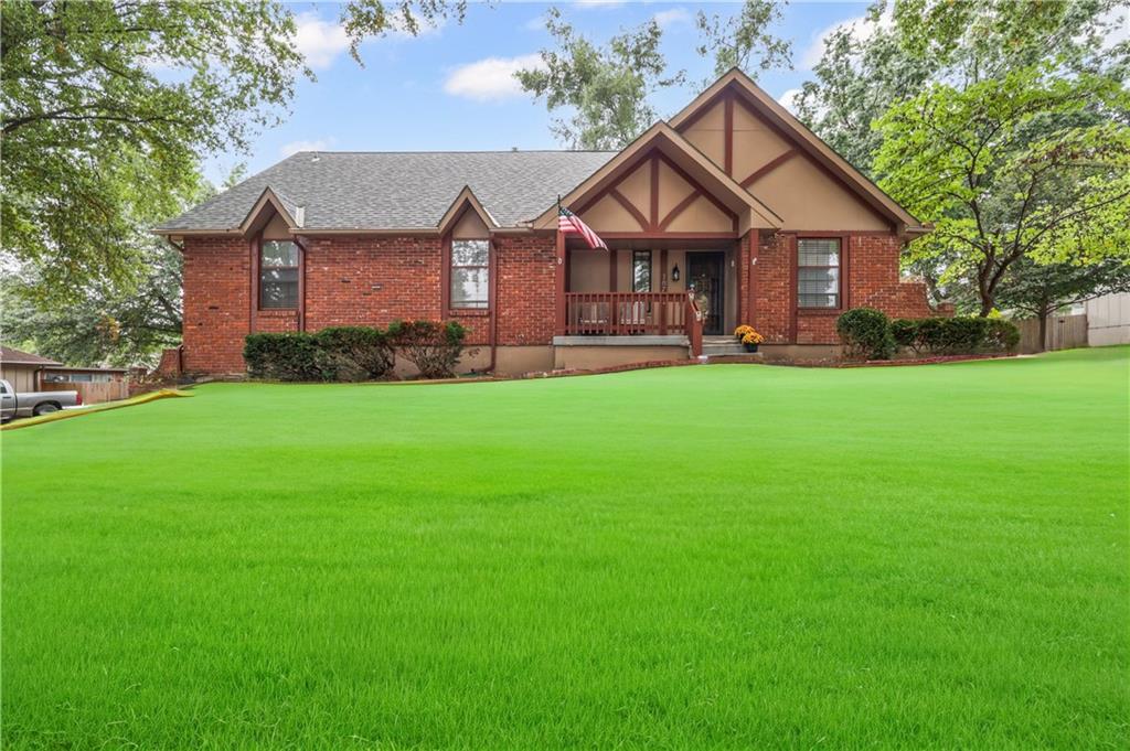 Come inside and enjoy a bright 2-story entry showcasing a dramatic catwalk & a vaulted great room with exposed beams, a 2-story fireplace, and built-in bookcases perfect for storage and display. Combination of luxury plank vinyl, hardwood floors flow (kitchen) throughout the main living space, creating a warm and welcoming atmosphere. The formal dining room offers flexibility to use as an office, playroom, or space for entertaining. The main level features three bedrooms, including two that share a convenient Jack-and-Jill style en-suite bath. Off the main hall, is a spacious bathroom that leads to the laundry room for added functionality. Upstairs, the large master suite is a true retreat with dual closets and dual vanities. A walk-in attic offers convenient storage across from the master suite or potential added space to convert to an office space, sitting room or perfect for gaming. The lower level provides even more opportunity with a customizable space featuring a stubbed-in bathroom, fireplace, and access to the oversized garage with built-in workbench, and private entry. Additional highlights include wiring for a security system, stubbed central vacuum (unit not included), and a large fenced backyard with patio that provides privacy for outdoor entertaining. Newer fridge, roof, carpet, hot-water heater, furnace, and extensive foundation work with a transferable warranty. Great access to shopping, dining, and area parks. Conveniently located, 5-6 min from I-70, making commutes to downtown Kansas City or other parts of the metro area both easy and efficient.