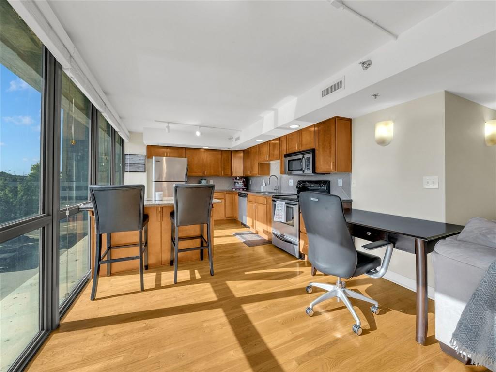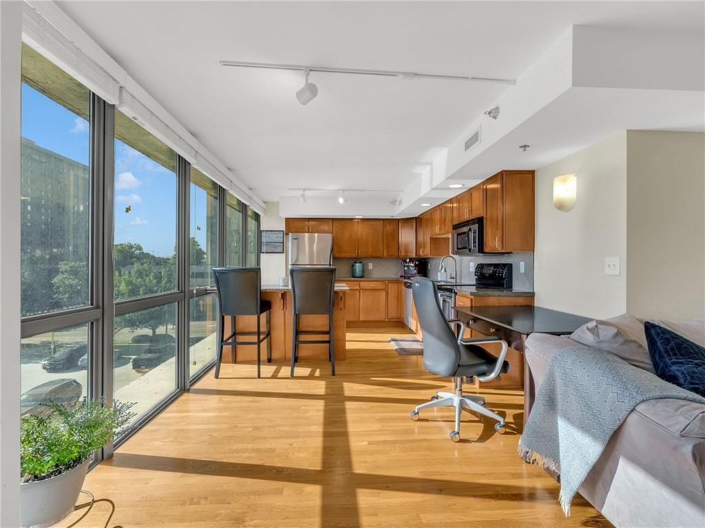 Turnkey condominium living in downtown Kansas City - all that is missing is you! All furniture will be included in this sale. 2 deeded parking spaces - 1 garage, 1 surface. Minutes from freeways, River Market, KC Current Stadium, Power & Light District and Streetcar line, which will soon go all the way to the Plaza and UMKC. The View is a condominium rich with amenities including an outside pool and hot tub; full gym; sauna; theater room; game room; social room for hosting parties; tennis court; dedicated covered storage; helpful concierge and great community. DOG FRIENDLY!