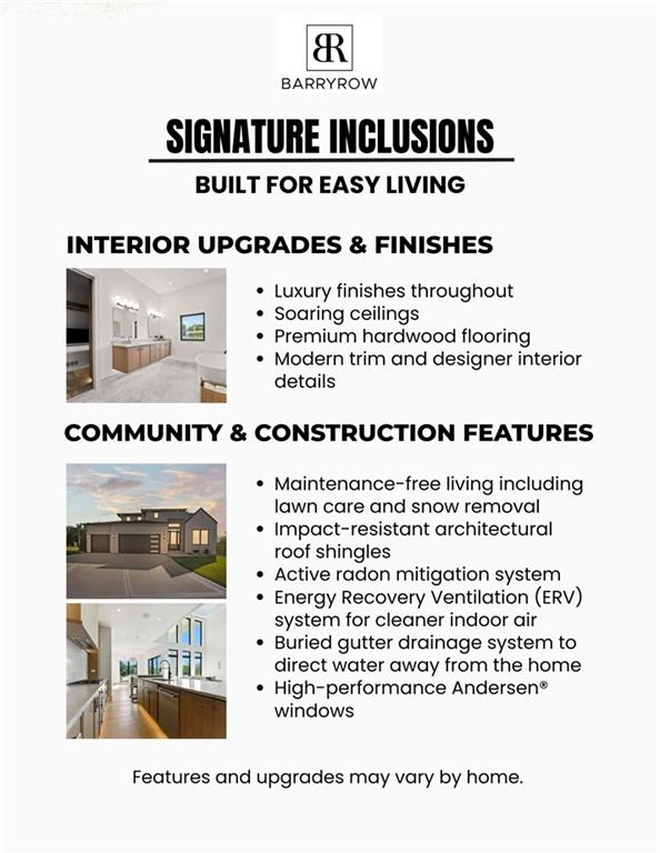 Experience One-Floor Luxury Living in BarryRow! The Cayman reverse 1.5-story puts all your primary living spaces on one floor—master suite, kitchen, and main living areas—making everyday life convenient, accessible, and effortless. With 4 bedrooms, 3 bathrooms, quartz countertops throughout, high-end appliances, smart home automation, and custom LED lighting, this home combines modern style with lasting quality. Enjoy maintenance-free living in a prestigious, energy-efficient BarryRow community. Optional elevator, laundry on every floor, sprinkler system, buried gutter drainage, and more add convenience and peace of mind. With only 27 lots total and just 23 remaining, now is your chance to join this exclusive, high-end neighborhood. Don’t wait—schedule your private tour today! Save on your interest rates with the builder’s 3-2-1 Buy Down on all new homes!