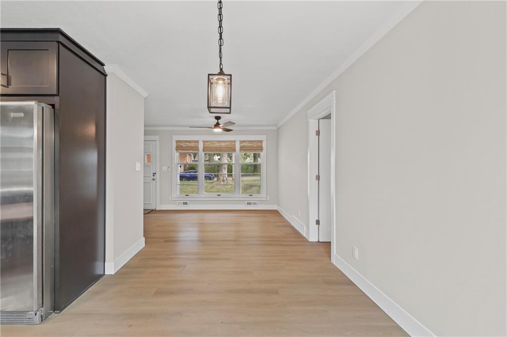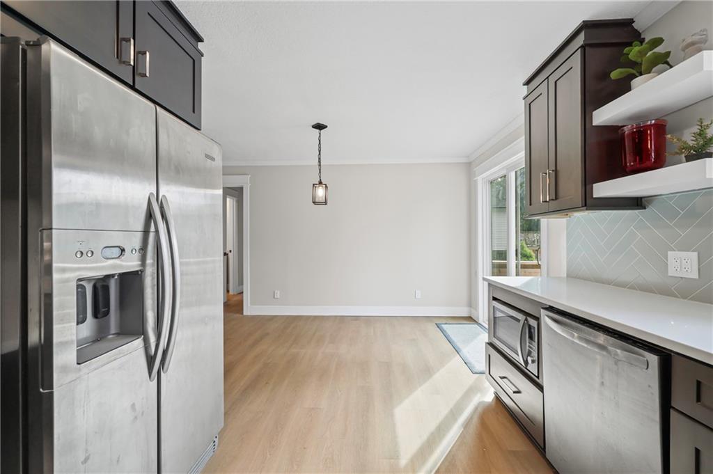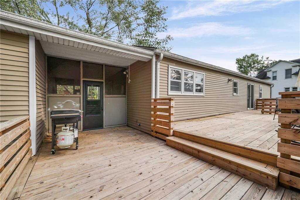 Updated Ranch with Huge Backyard and Deck This beautifully updated ranch is move-in ready and full of modern touches. The seller has done the hard work for you — with fresh flooring, neutral paint, crisp trim, and updated lighting throughout. The bright, open layout connects the living, dining, and kitchen areas seamlessly, creating a comfortable flow for everyday living. The kitchen features updated cabinetry, backsplash, and stainless steel appliances, with direct access to a large, multi-level deck perfect for grilling or entertaining. covered breezeway between the garage and the home makes it great to bring in your groceries. The basement provides plenty of extra storage and laundry space. The fully fenced backyard is spacious and private, offering room for kids, pets, or gatherings under the trees. With a two-car garage, excellent outdoor living space, and a convenient location, this home blends comfort, function, and style — all move-in ready and beautifully maintained. Buyer(s) and/or Buyer's Agent to verify all taxes, sqft, school district information, etc. Room, basement and lot size are approximate.