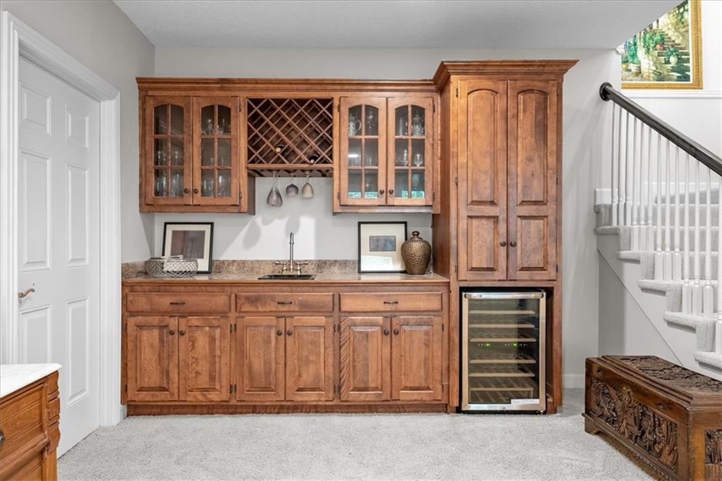 The Estate Sale is complete and the sellers are ready for offer on this beautiful maintenance-provided free-standing villa in the highly desirable Villas of St. Andrews. It sits on a premier interior walkout lot and showcases a very flexible floorplan with an office/second bedroom adjoining the primary suite. Offering 4 bedrooms and 2.1 bathrooms, the home has been refreshed with new carpet and paint in the main living areas. The spacious primary suite and secondary bedroom each feature large walk-in closets and are connected by a generous primary bath. The kitchen provides abundant cabinetry and opens to the dining area and hearth room, creating an inviting space for everyday living. A delightful three-season room overlooks the backyard, perfect for morning coffee or evening relaxation. The walkout finished lower level adds incredible versatility with two additional bedrooms, a full bath, and a spacious recreation room—ideal for guests or entertaining. Conveniently located in southern Johnson County, this exceptional villa offers both comfort and convenience in a sought-after neighborhood.