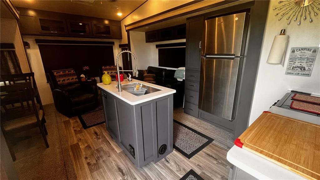 This is the perfect lot for enjoying the lake life in the Linn Valley community. The lot has a 100 AMP electric meter, crushed rock driveway for RV level positioning, a firepit, and includes the 275-gallon water container and trailer. A few of the features on the camper: 3 slide-outs with 15 foot awning, Kitchen has a residential refrigerator, Bathroom has a residential size shower and porcelain toilet; Bedroom has a custom king-size RV bed, large closet and dresser. The closet is plumbed for washer/dryer; Living area has ceiling fan, table with 4 chairs, 2 recliners, and a couch that pulls out into a full-size bed:2 rooftop AC units with individual thermostat controls. Come experience a great community with an 18-hole golf course, clubhouse with regularly scheduled activities, a community center with an exercise and fitness room, 2 swimming pools, a mini golf course, basketball and tennis courts, a walking trail, playground, fishing dock, boat ramp, campgrounds, shelter houses, a beach, sand volleyball, and more! Several stocked lakes and the main lake on which you can boat and jet-ski. There is personal property being sold with this listing.
