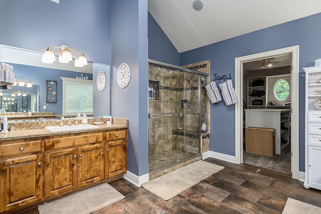 LUXURY LIVING AWAITS ON THIS SECLUDED 5-ACRE RETREAT! This stunning 5-bedroom, 4.5-bath home blends elegance and comfort with a chef’s kitchen featuring granite counters, island, walk-in pantry, and cozy hearth room. The main level also offers a formal dining room, private office, and a spacious living room with fireplace. Upstairs, the master suite is a true getaway with a spa-like bath—double vanities, separate tub and shower—and a huge walk-in closet. A second bedroom suite with its own bath and walk-in closet plus two more bedrooms with a jack-and-jill bath complete the upper level. The finished walkout basement is perfect for entertaining with a family room, wet bar, rec room, and plenty of storage. Step outside and enjoy peaceful country views from the covered patio with its custom fireplace, or relax on the lower-level patio. An attached 3-car garage plus a detached 36x40 garage/shop provide plenty of space for vehicles, hobbies, or toys. Located on paved roads with a private, picturesque setting, this must-see property has it all!