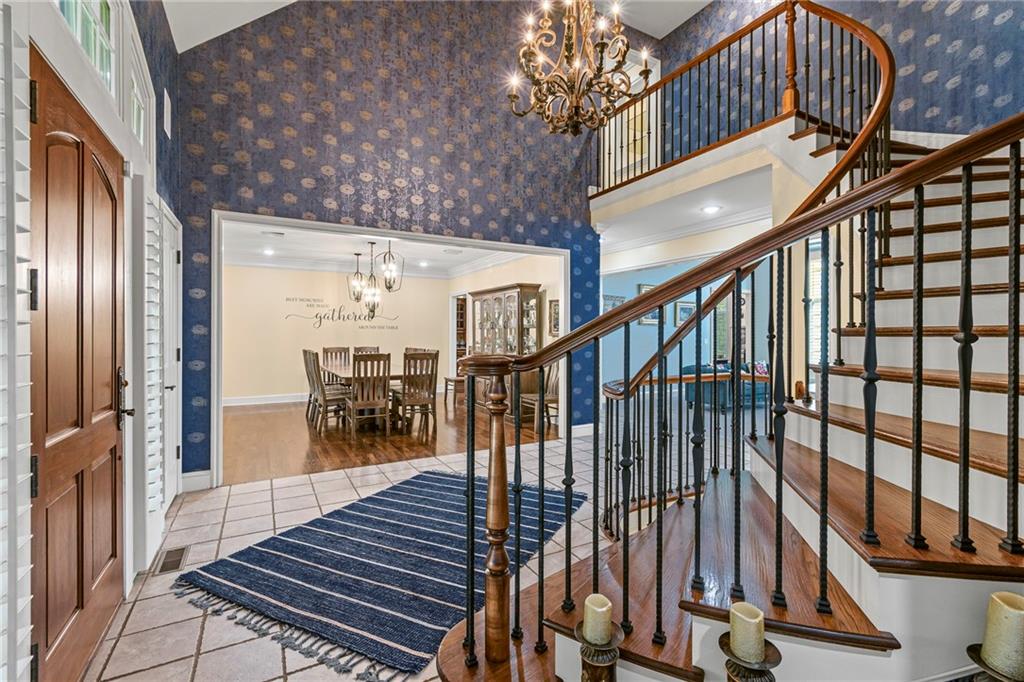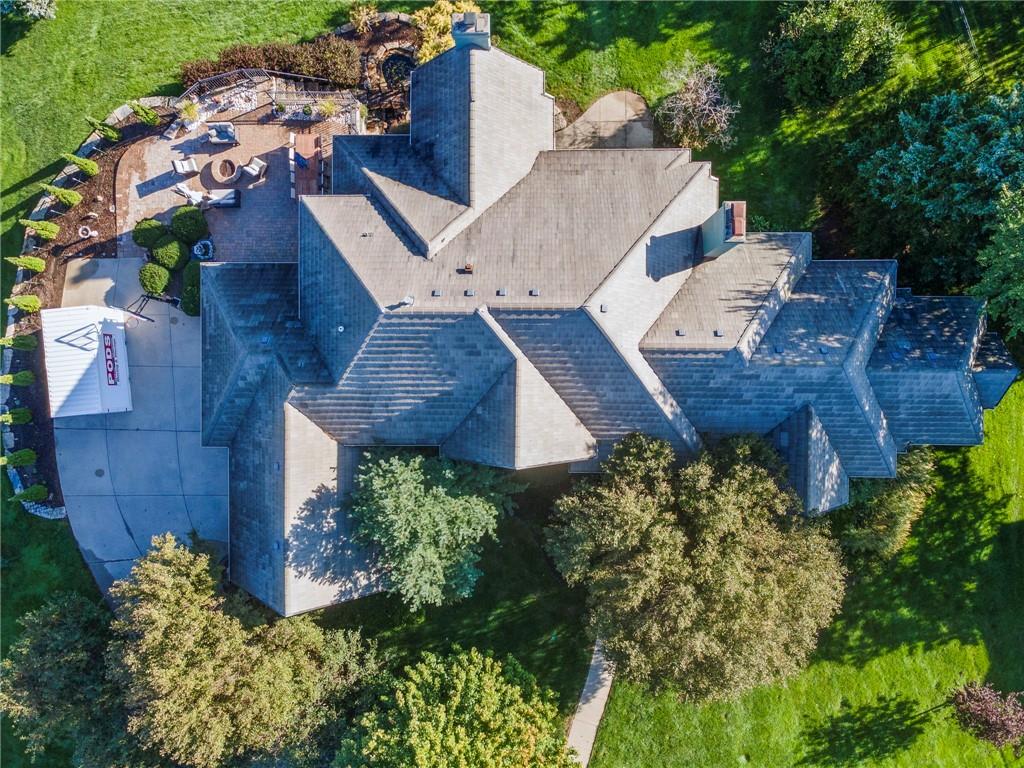 Multi-generational Estate size home with 2 primary suites and a 4 car side entry garage offers privacy on this 1+ acre lot. Additional square footage in the lower level has been professionally finished adding 2 bedrooms and 2 bathrooms to this home. Outside boast lots of trees, landscaping, a water feature, firepit & 2 patios. Upon entering you are greeted with a stunning 2 story circular staircase, plantation shutters, library with floor to ceiling built-ins, large Primary suite with new carpet, walk in shower and 2 closets. There are beautiful hardwood and carpet on the main level with a formal living and dinning room. Large chef's kitchen featuring gas cooktop, island, double ovens and pantry. The hearthroom has a beautiful stone fireplace, built ins and wet bar. Upstairs has 3 bedrooms with private baths, second laundry. New carpet upstairs in 2 bedrooms and hall. Walkout lower level w/full kitchen, rec room, 3rd fireplace, second primary suite and additional bedroom w/bath. 4 car Garage has floor to ceiling cabinets a 2nd separate staircase to the basement. This home a plenty of space for entertaining.