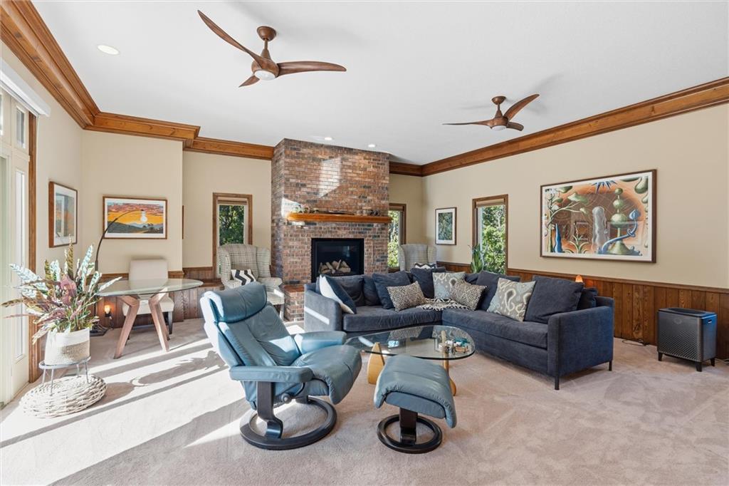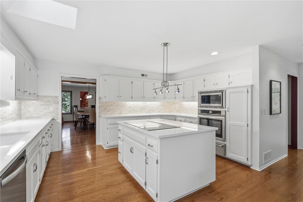 Welcome to this beautifully updated 1.5-story home tucked away on a private cul-de-sac lot in the sought-after Claymont North neighborhood. Surrounded by mature trees and minutes from Briarcliff Village, downtown, and KCI, this residence combines classic charm with thoughtful modern updates. Step inside to find 4 spacious bedrooms, including a finished lower level with egress window and closet, perfect as a guest suite, office, or 4th bedroom. The inviting great room features a new fireplace and full-service chimney, while hardwood floors flow through the main level. The kitchen boasts under-cabinet LED lighting, new oven and dishwasher, and opens to both formal and eat-in dining areas. Retreat to the primary suite with hardwood flooring, walk-in closet, and a spa-like bath with skylight, double vanity, separate shower, and soaking tub. Additional highlights include custom blinds and window treatments throughout, new Pella windows, new carpet, fresh interior paint in select rooms, and a freshly poured garage floor. Entertain indoors or out with ease—enjoy the maintenance-free deck, designer stained and stamped concrete patio, built-in Weber gas grill, and professionally landscaped yard by Rosehill. Recent improvements also include a new roof, exterior siding repairs with fresh paint, new skylight, duct cleaning, and updated exhaust system. This meticulously maintained home offers 3,500+ sq ft of living space with a finished walkout basement, oversized storage areas, and cedar closet. Located in the award-winning North Kansas City School District, this home is move-in ready with every major update already done.