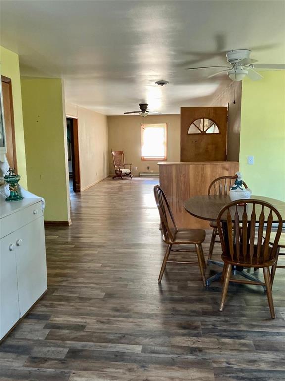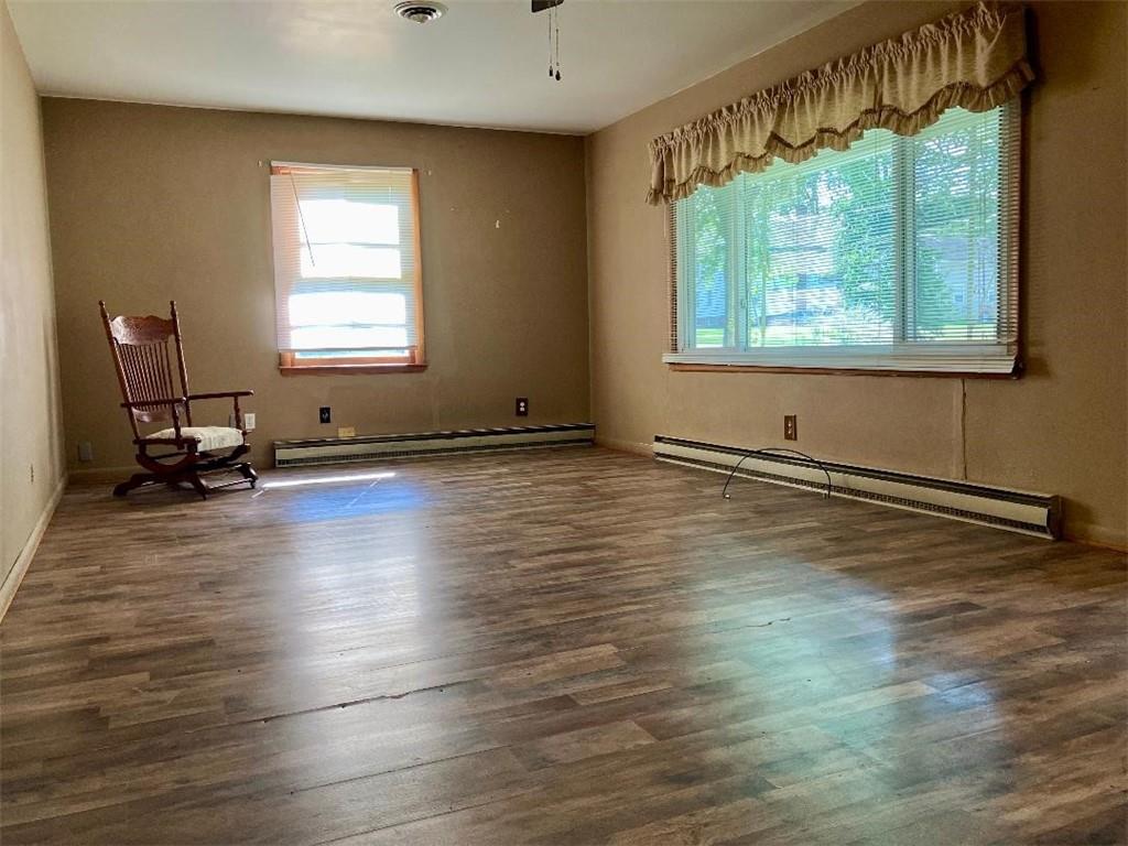 This home is quite spacious! Walk in to a wide open Living Room, Dining Room and Kitchen combination that is amazing! Great for family gatherings! Very nice garage and big yard! This two bedroom home offers a sitting porch in the front at the entry, and a good sized patio between the garage and the home! The Laundry Room has a lot of space, with a huge closet and a walk out to the back yard! This would make anyone a great place to live!