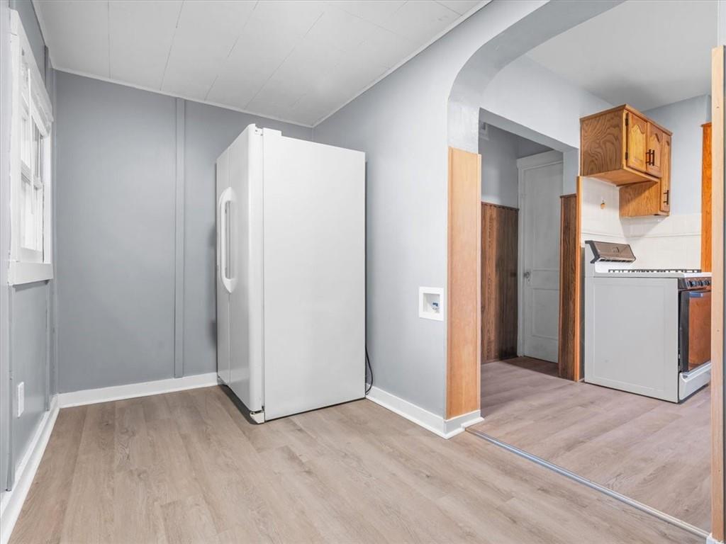 Welcome to this meticulously updated 1.5-story home, offering a perfect blend of classic charm and modern convenience. Ideal for families, professionals, or anyone seeking a move-in-ready property, this home features 2 comfortable bedrooms, 1 well-designed bathroom, and a versatile office room, perfect for remote work or study. Enjoy freshly painted walls throughout, creating a bright and inviting atmosphere. New light fixtures add a modern touch, while a stylish new handrail enhances both safety and aesthetic appeal.The kitchen, laundry room, and office boast brand-new flooring, offering durability and a contemporary look that elevates the home’s charm. Stay comfortable year-round with a new furnace and air conditioning system for optimal energy efficiency. The home also features updated plumbing and a reliable 100-amp electrical system for peace of mind.The 1.5-story design maximizes space with a spacious living area, a well-equipped kitchen, a convenient laundry room, one bedroom and one bath on the main level. Upstairs, you’ll find one cozy bedroom and an office. Unwind in a beautifully backyard, ideal for entertaining, gardening, or relaxation. The property includes a driveway and alley access, providing ample parking and easy entry. With recent upgrades, including new light fixtures, paint, flooring, and essential systems, this home is ready for you to settle in and make it your own.Seize the opportunity to own this beautifully updated home in a desirable location. Schedule a showing today to experience the charm and comfort of this 1.5-story gem!