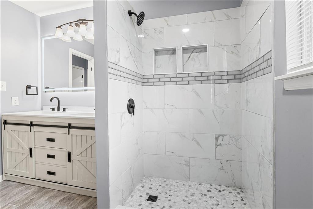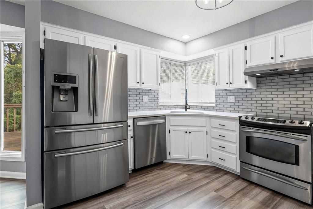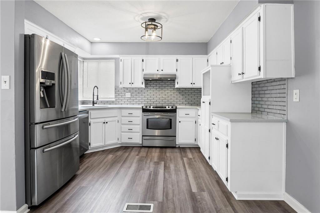 ABSOLUTELY GORGEOUS 2 STORY HOME REMODELED ON LARGE CORNER LOT! Beautifully Updated Entertainer's Dream! Soaring Entry with wall of windows letting natural light pour in. 2nd Living area on main level with central stone fireplace off Kitchen. Fully UPDATED KIT that is sure to please showcasing tons of white cabinets including LARGE PANTRY, stainless steel appliances--ADDED BONUS--ALL APPLIANCES STAY, QUARTZ countertops. Primary Suite complete with Walk-In Shower, Double Vanity and EZ access to LAUNDRY! Secondary bedrooms offer JACK AND JILL BATH! Partially finished Basement showcases 4th Non-Conforming Bedroom and plumbed for future full bath! Enjoy the outdoors with a fully fenced yard with a shed for outdoor storage needs. LARGE DECK off kitchen! Oversized Garage with Built-In Work Area! Fantastic Location close to shopping, dining and parks! Ready for New Owners to Move In!