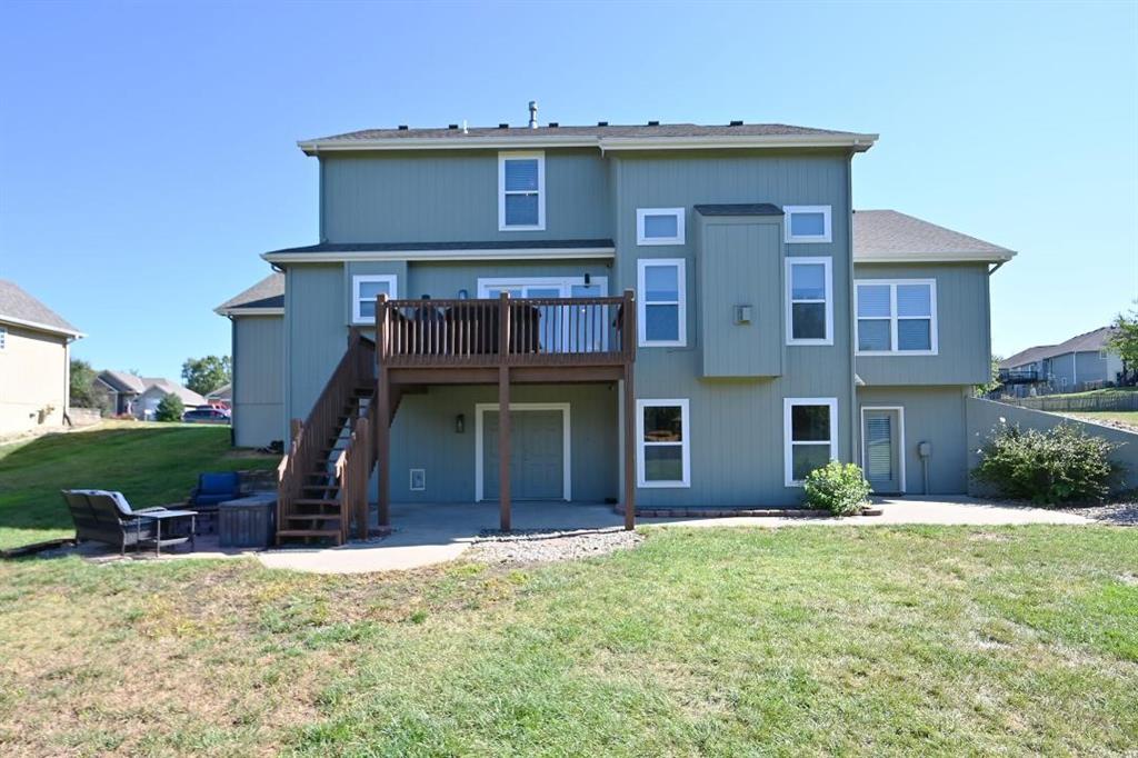 Beautiful 4–5 Bedroom Home on Corner Lot – Platte County Schools! This stunning home offers space, style, and thoughtful updates throughout, making it ideal for both everyday living and entertaining. On the main level, you'll find a spacious master suite with new carpet, a walk-in closet, and a huge master bathroom featuring double vanities and a large tiled shower. The entry and formal dining room boast beautiful hardwood floors, while the kitchen is updated with a center island, stainless steel gas stove, dishwasher, and a walk-in pantry. The laundry room is conveniently located on the main floor and finished with tile. The great room, complete with a cozy fireplace, has new carpet and fresh paint, creating a warm and inviting space. Upstairs, there are three generously sized bedrooms, each with walk-in closets and ceiling fans. A Jack-and-Jill bathroom connects two of the rooms, while the third enjoys access to a separate full guest bath. All upstairs areas have new carpet and fresh paint, ensuring a clean and modern feel throughout. The finished walk-out lower level offers incredible flexibility with a large family or sports room, a kitchenette, and a huge full bathroom. There’s also a non-conforming bedroom that could serve as a fifth bedroom, office, or guest space, along with plenty of storage. Outside, the home continues to impress with a large deck, an expansive patio, and a super-sized yard—perfect for outdoor gatherings. Recent upgrades include new carpet, interior and exterior paint, a new water heater, water softener, sump pump, and garage door openers. Located on a spacious corner lot in unincorporated Platte County, this home offers lower taxes and access to highly rated Platte County schools. You’ll love everything this home has to offer—it truly makes a statement.