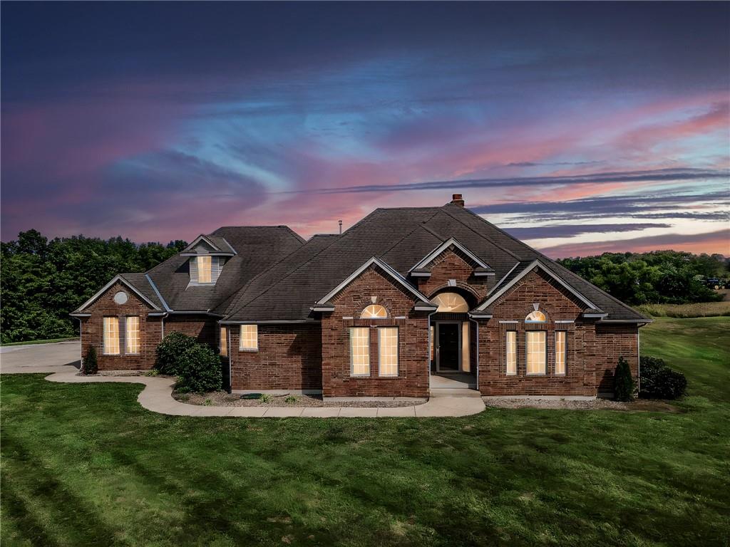 Peace and Quiet. AND, Peace of Mind. A roof/gutter concession is offered, ensuring just that. And, LOCATION! 30 minutes to Liberty and 15 minutes to Excelsior Springs. Nestled on 7.63 private acres, this brick ranch is rare. Step inside the grand, 14-foot entryway, where you'll find high-quality, durable tile work that continues into the kitchen. The home's custom woodwork is immediately apparent, setting a tone of enduring quality. The gourmet kitchen is a foodie's delight, appointed with NEW granite countertops, a pull-out-drawer pantry, a heavy-duty gas cooktop, and a charming breakfast nook with picturesque views. The main living area is anchored by one of two oversized cast-iron wood-burning hearths. Paired with NEW windows throughout and NEW carpeting, this home offers remarkable energy efficiency. Imagine cozy winters where these powerful hearths can heat the entire home, keeping comfort high not utility costs. The master suite is an escape. The private en suite features an elegant, walk-in shower and a luxurious dual waterfall Jacuzzi tub. NEW "his and her" vanities and oversized closets complete this personal touch. The versatile walk-out basement, with finishings currently in progress, including NEW LVP flooring, offers nearly 2,000 sq ft of incredible potential. It includes a second kitchen, extra rooms for home office or play space, and a concrete-enclosed "safe room." Step outside to enjoy peaceful country living from the massive rear deck. You can rest easy knowing that major system updates are complete, ensuring years of worry-free living. The home is equipped with NEWER HVAC, two water heaters, and NEW garage doors and NEW openers. A 32x48 outbuilding is also included. This is more than a home; it’s a lifestyle. It offers exceptional quality without pretense—a space meticulously designed for comfort, privacy, and endless possibilities.