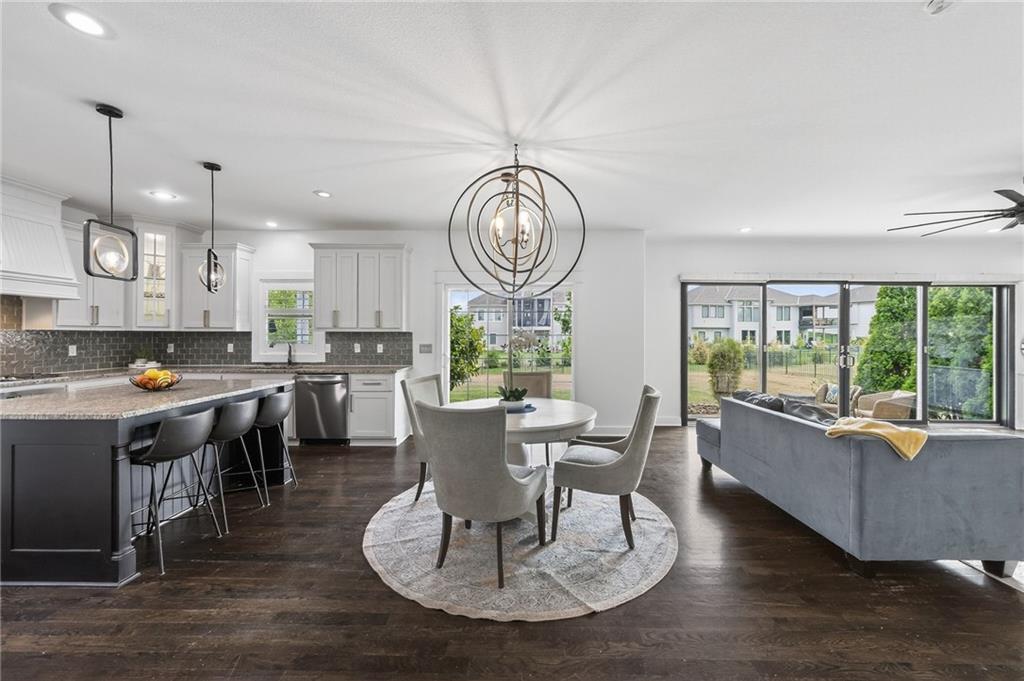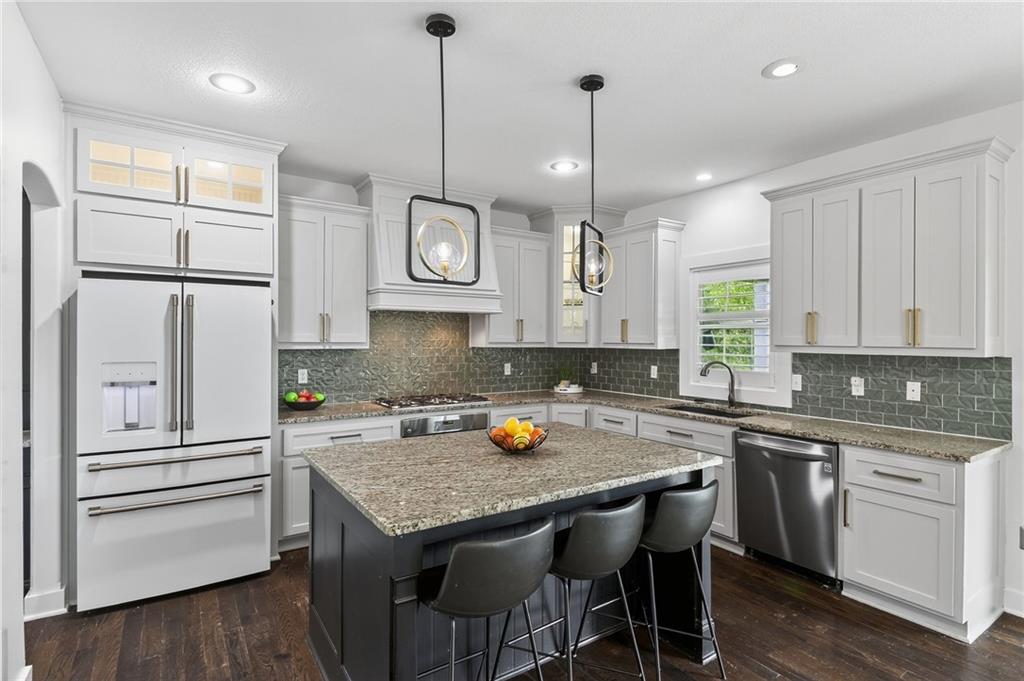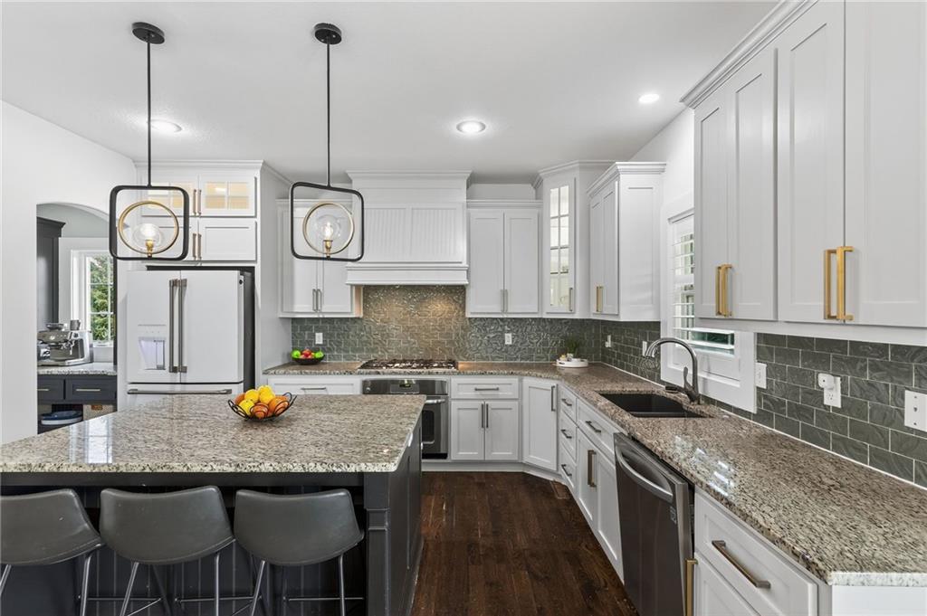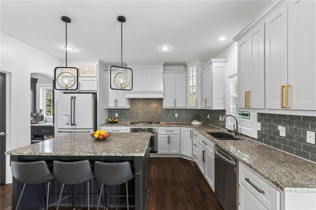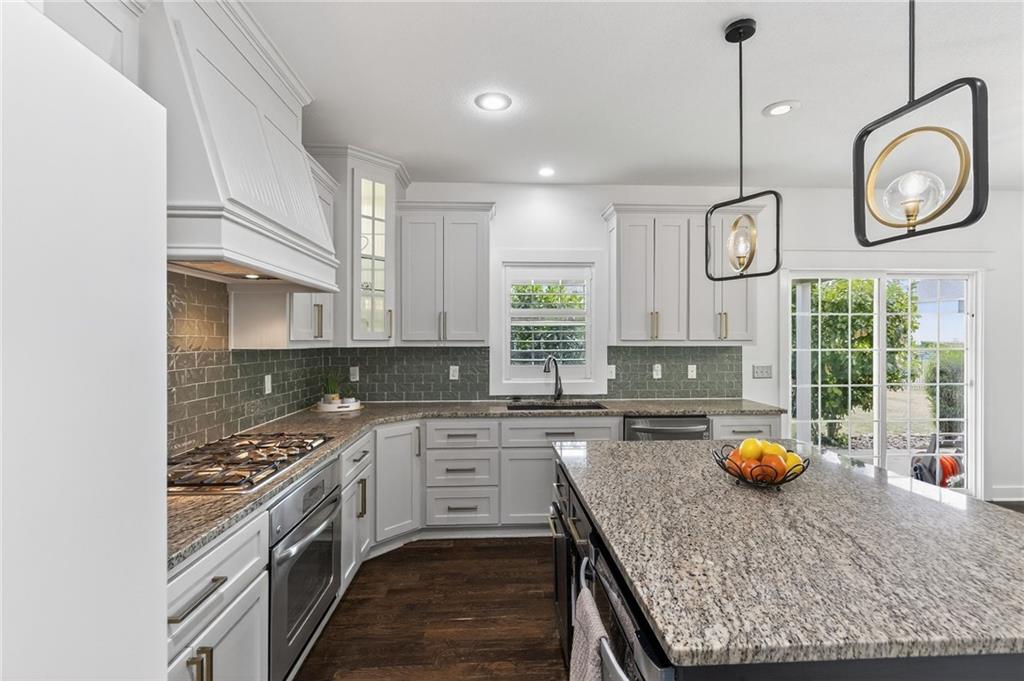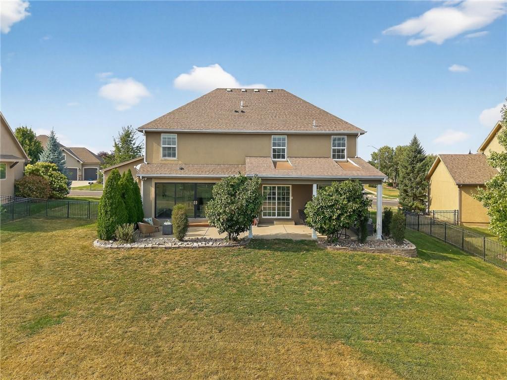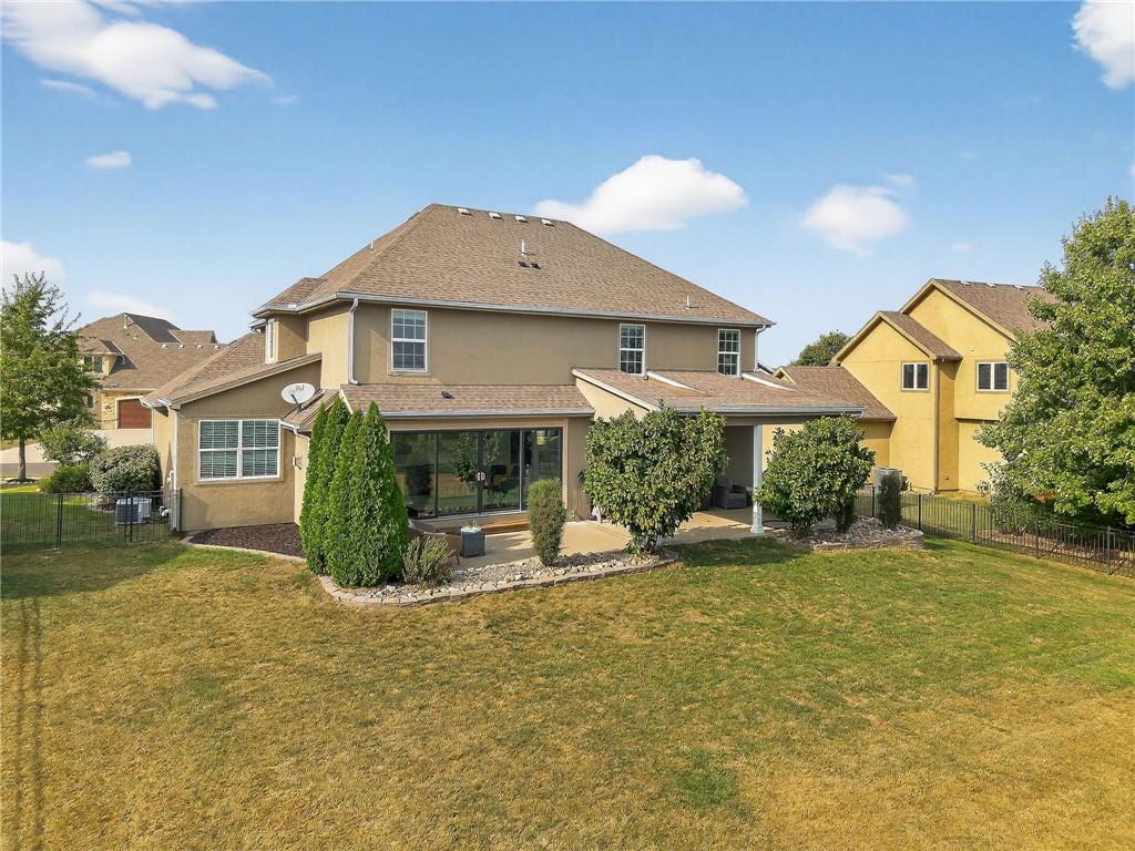 Award-winning Casa Bella floor plan with elevated finishes and exceptional functionality! Main level features a grand kitchen with granite island, walk-in pantry, butler’s pantry, and open great room with gas fireplace and built-ins. Natural light pours in through a wall of windows overlooking the fenced yard and covered patio. Formal dining, private office/flex space, mud room, and powder bath complete the main level. Upstairs boasts a spacious primary suite with luxury bath, walk-in closet, and dual sinks, plus three additional bedrooms with ensuite and a Jack & Jill bath and convenient laundry. The finished lower level is perfect for entertaining or extended family, offering a full 2nd kitchen with stainless appliances, wet bar, full bath, bedroom, and storage. Enjoy outdoor living with a covered patio, grilling space, and a large flat yard. Three-car garage included. Move-in ready and designed for everyday living + hosting in style!