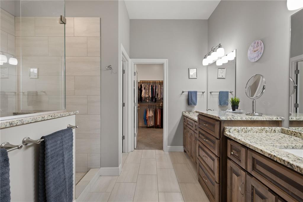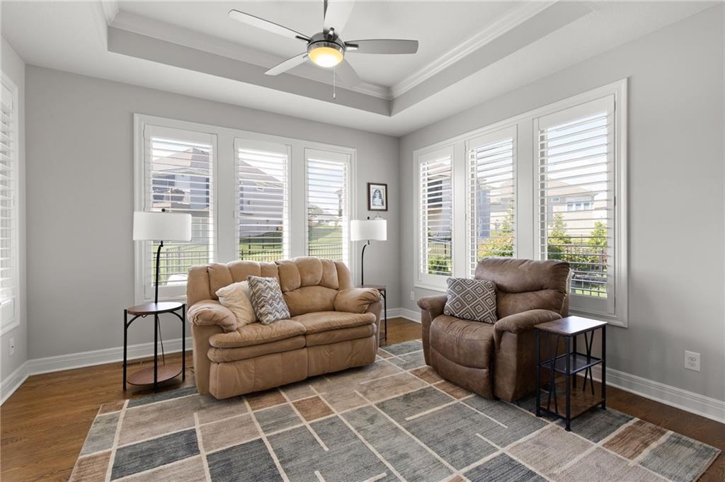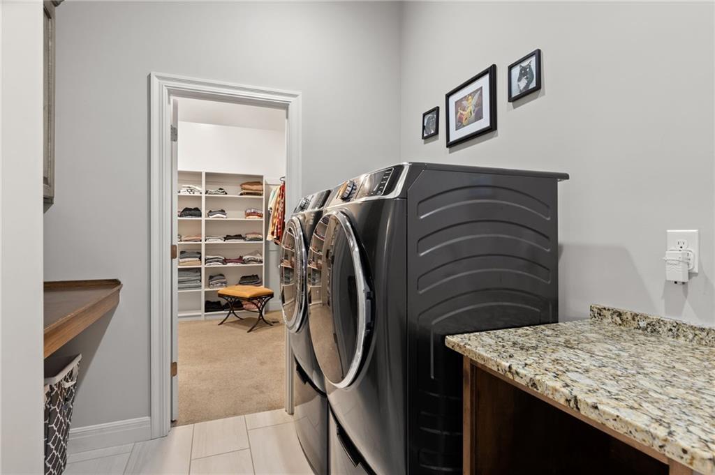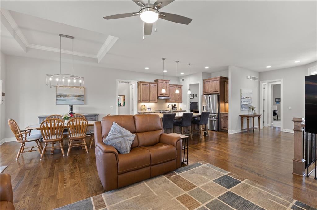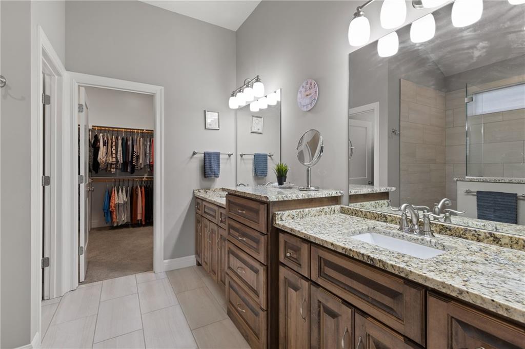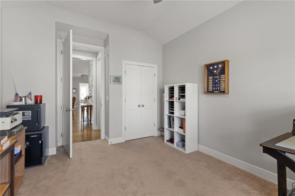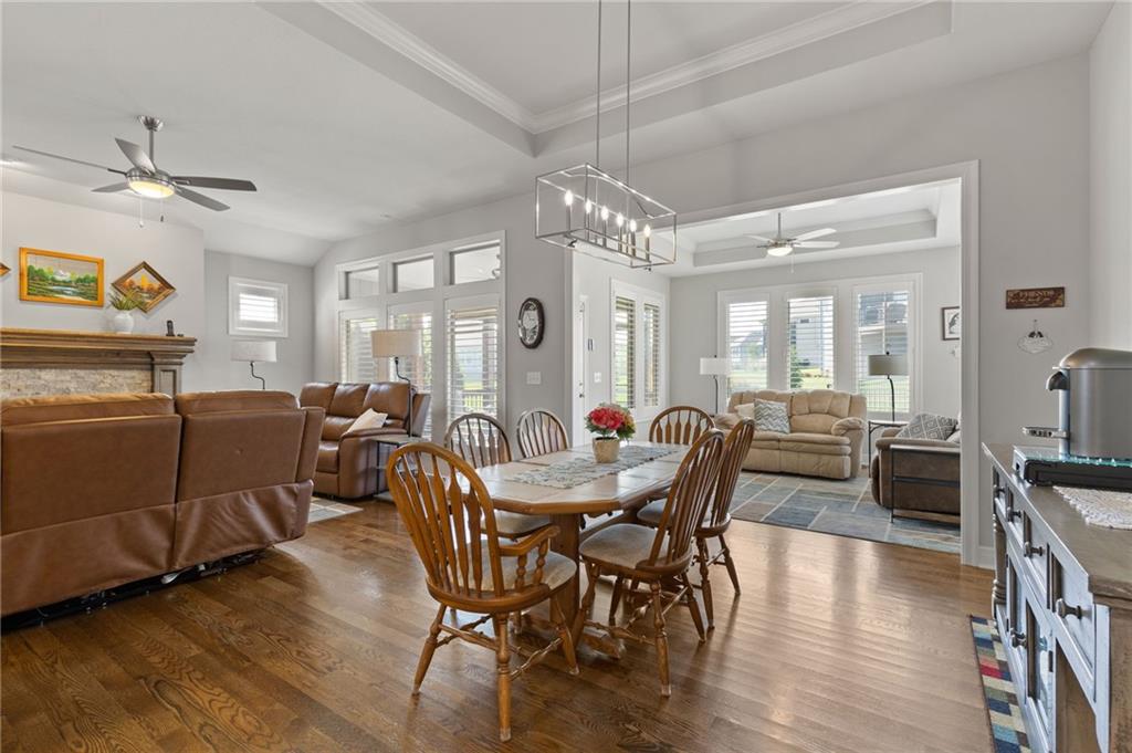 Nearly new patio villa in highly sought-after Solera Reserve! Enjoy maintenance-provided living in a friendly, walkable community surrounded by lush lawns and beautifully manicured landscaping. The inviting stucco exterior with stone ledge accents and cedar shutters welcomes you to a covered front porch and angled full-glass storm door. Inside, hardwood floors flow through the hallway and main living areas, complemented by classic plantation shutters for timeless character. A vaulted secondary bedroom and nearby full bath with granite counters, tile flooring, and a shower/tub combo offer the perfect space for guests or a home office. The open-concept great room features hardwoods, a stone-surround gas fireplace, and large windows overlooking the covered, screened-in deck. The kitchen is a showstopper—granite island with breakfast bar, stainless steel appliances including a gas range and refrigerator, vent hood, coffee bar, under-cabinet lighting, and walk-in pantry, with direct access to the laundry room. The sunny breakfast nook opens to a four-season sunroom that flows seamlessly to the screened-in deck—ideal for entertaining or relaxing evenings at home. The primary suite offers a stepped ceiling, plush carpet, and a spa-like bath with granite counters and an oversized Euro shower. The expansive walk-in closet connects conveniently to the laundry. The finished lower level adds a spacious rec room with granite wet bar, egress window, two additional bedrooms, and a full bath. Extras include washer/dryer, sprinkler system, security system, radon mitigation, sump pump with battery backup, SunSetter awning, tankless water heater, whole-house water filter, and Generac generator. Enjoy resort-style living with a community pool, clubhouse, lawn care, trimming, snow removal, and sprinkler winterization all included!