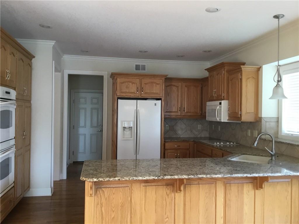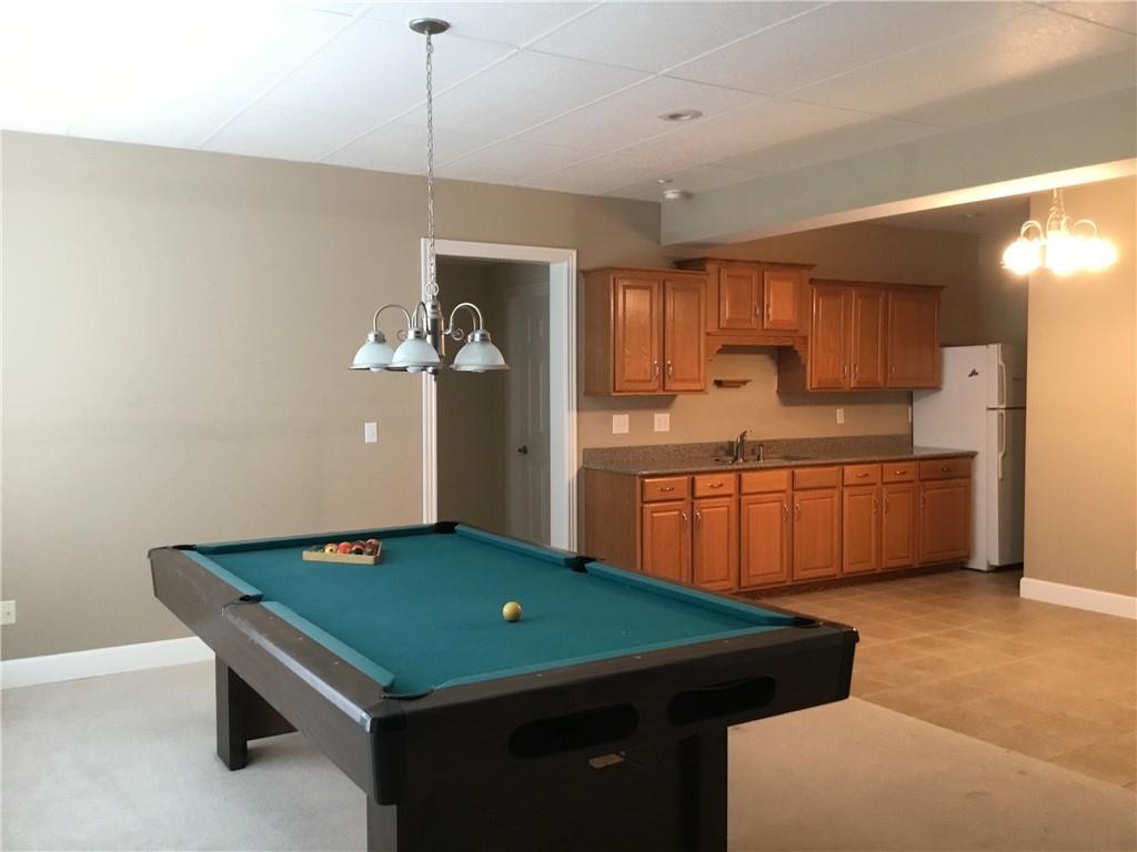 Welcome to the beautiful reversed 1.5 story located off the 12th hole of the Drumm Farm Golf Course. The open floor plan has a large master with a walk in closet and great cabinets in laundry room. The hearth room and living room have a see-through fire place. There is an eating area by the kitchen and a formal dining room. Laundry room has many cabinets and is on the main level. Another bedroom or office is on the main level. Two more bedrooms in the lower level and bath. The large family room has wet bar. The walkout basement has an Unbelievable storage area with closed area for water heater and furnace. Pool table stays. Refrigerators stay.