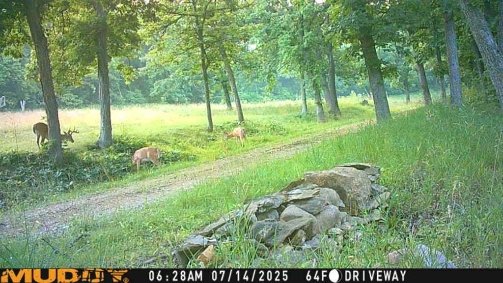 Opportunity to own 242 a. m/l with a very secluded home located right in the middle of prime deer/turkey hunting land with mature trees, creek and feeding areas. Deer blind included. Approx. 64 a. row crop and 26 a m/l hay ground. House has a great room with vaulted ceiling, woodstove, loft with primary bed and bath. 2nd bedroom and bath on main level. Unfinished basement. Spectacular view from covered front porch with 25X10 uncovered side porch. Detached 3 car garage with electric service and concrete floor. 12X12 metal storage shed. Separate 49X25 metal building on north end of property with county road frontage. Private well. Septic system. House and property are being sold "AS IS", Buyer inspections welcomed. 2025. Crop production stays with Sellers.