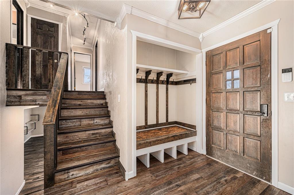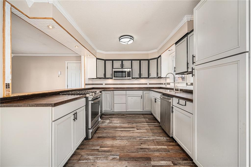 Ready for you is this beautifully updated home nestled on an extra-large city lot with mature trees and lots or room to play and grow!! The five-year-old deck is perfect for entertaining, and the back yard includes playground equipment, conservation rain barrels AND a very nice shed, perfect for storage or hobbies. Fresh new paint inside and out, along with stylish and durable new LVP flooring. Attractive and smart butcher block countertops flank the GAS oven/range and all the appliances are just TWO years young! (Matching refrigerator is scheduled for install prior to closing) There's tons of storage in the kitchen and don't miss the barista station just inside the deck door, perfect for prepping that sunrise cuppa! The 3 bedrooms are located on the upper level, safe and cozy all together! The full bedroom level bathroom has double sinks and a handy linen closet in the hall. The lower level Rec room is a great place to play, relax and cheer for your favorite team! . A convenient half bath is located just off the rec room. AND GUESS WHAT? A concrete walled bunker / storm shelter!! Enjoy peace of mind with a brand new roof, and energy-efficient comfort with a 3-year-old AC and furnace. The spacious oversized garage features brand new garage doors and exterior door access. This move-in ready home offers the space, features, and updates YOU are looking for!! Plan your tour and move HOME!