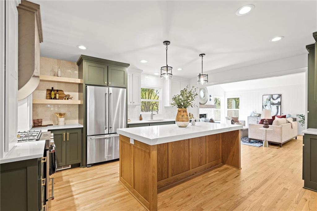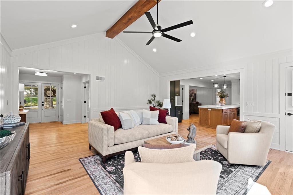 Villa style living could be yours at this fully remodeled home in an unbeatable location. Boasting a ranch/reverse 1.5 story floor plan, every inch has been thoughtfully renovated with modern touches yet timeless style. This home offers 4 spacious bedrooms and 3.5 pretty as a picture bathrooms. You will fall in love with the built-in's, custom crafted cabinetry, vaulted ceilings, flexible floor plan, designer touches and everything is NEW! Stunning double front doors and bright foyer showcase french doors leading into a stately office or den. Enter the gorgeous vaulted living room and hearth flanked by windows overlooking the half acre yard complete with a freshly stained deck, pergola and firepit too. The custom kitchen has a grand quartz island, gas stove with hood, floating shelves and walk in pantry. It leads into everyone's favorite breakfast/dining room. Holiday dinners will be perfect in here when everyone gathers around the table and grabs a drink and an appetizer from the built in buffet with arch and floating shelves. The primary en suite also has a sitting area and walk in custom closet with stackable hook-ups. The shower is the star in the primary bath. There is one additional large bedroom on the main level with full hall bath showcasing a soaking tub, separate shower and double vanities. The expansive walkout/walkup lower level has room for everyone including the two remaining bedrooms, well appointed full bathroom, large laundry room, and a lovely kitchenette. Do not miss out on the opportunity to own a rare gem in one of Leawood's most desirable locations and neighborhoods.