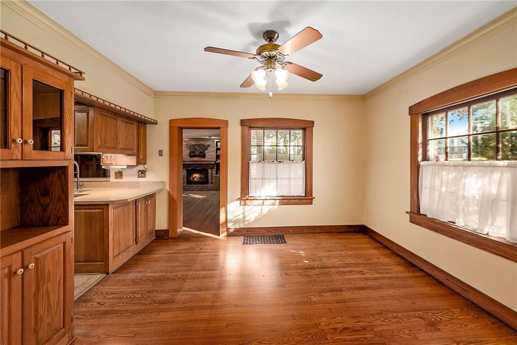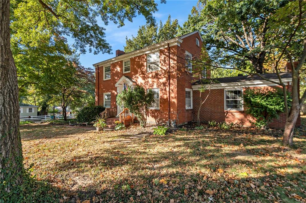Welcome to this charming all-brick home set on a spacious corner lot surrounded by mature trees. Offering 4 bedrooms and two and a half baths, this home features a thoughtful addition that expands the main level with a private primary suite, complete with two walk-in closets and its own bath, a main-floor laundry room with multiple built-ins and pull down ironing board, and a convenient hall half bath. From here, step out onto the large deck that is ideal for gatherings or quiet evenings outdoors. There is a second addition off of the kitchen and dining rooms that adds even more functionality to the main floor. This warm and inviting family room features a gas log fireplace insert, and two large built-in bookcases on either side. The main living room has original built-in bookcases that add charm and maintain the historic value of the home while the gas log fireplace offers a cozy setting on those cold winter evenings. A small library/sitting room is off of the living room and has a door to a covered porch. Three secondary bedrooms upstairs and a hall bath complete the interior of this home. Outside you will discover a generous 2-car garage with a loft above that provides excellent storage, while a side carport adds additional parking options or lawn equipment storage. There is also a walkout/walkup basement that might have been an original garage. New replacement windows were recently added in the family room and primary suite. With it's blend of comfort, space, and classic appeal, this home is ready to welcome its next owners.