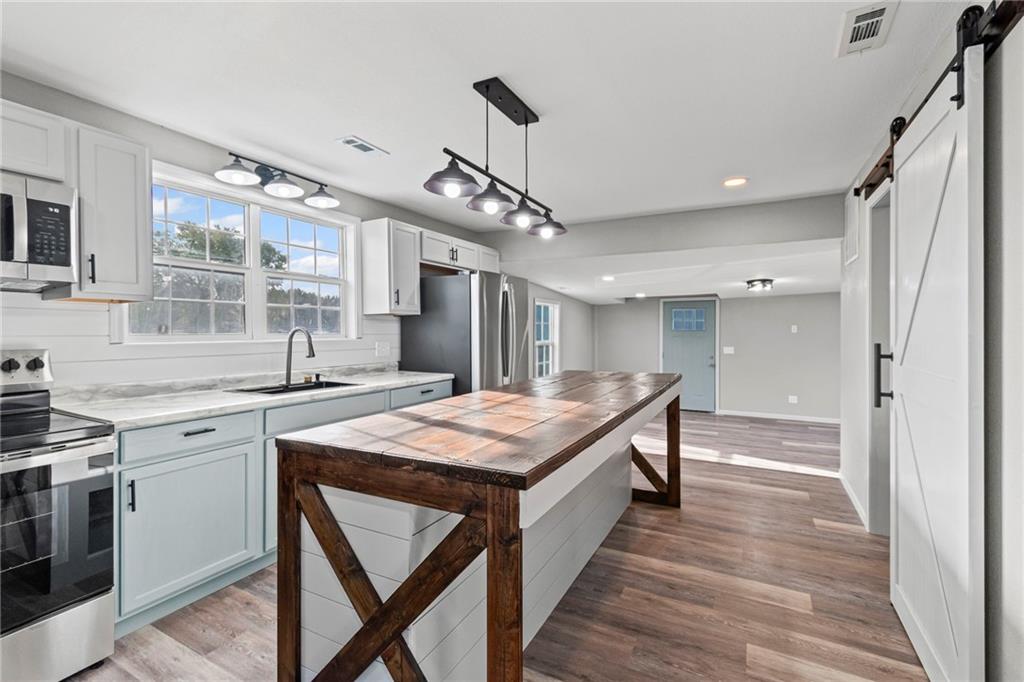 What a fantastic remodeled home featuring a 29x24 shop! Enjoy all one-level living in a completely updated space. The home boasts a spacious master bedroom with his and hers closets, along with a master bath that includes a separate shower and a luxurious soaking tub. The eat-in kitchen is perfect for gatherings, offering a generous island for convenient food prep and serving.