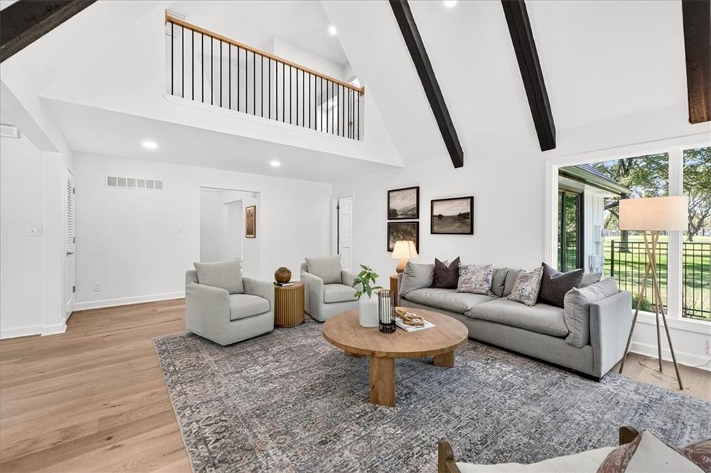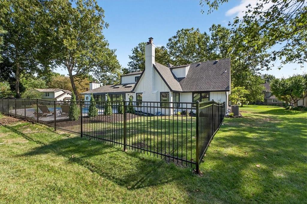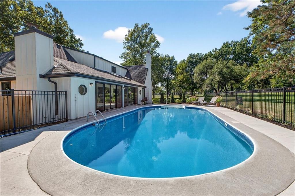 Hidden away on one of Leawood South's most coveted and private cul-de-sacs, this fully renovated residence with a sparkling pool sits on what is truly one of the best streets in the neighborhood. Perfectly positioned on the 9th hole of the Country Club of Leawood, this 4-bedroom, 3.5-bath home offers an unmatched combination of privacy, elegance, and resort-style living. Every detail has been elevated with designer finishes and modern upgrades, including brand-new windows, HVAC, and water heater. The main level features soaring ceilings, a dramatic floor-to-ceiling chiseled marble fireplace, and dual 7 foot sliding doors that frame spectacular golf course views while opening seamlessly to the pool and patio. A modern kitchen with custom cabinetry and a spacious mudroom with built-ins bring both sophistication and convenience. The primary suite captures peaceful views and features a spa-like marble walk-in shower and an expansive walk-in closet. The finished lower level extends the home's living space with a cozy fireplace-warmed rec room, a 5th non-conforming bedroom, exercise room, bonus room, and full bath. Outdoors, the newly poured concrete patio, refreshed landscaping, and sparkling pool create a private retreat overlooking manicured fairways ideal for both entertaining and serene relaxation. Located within the award-winning Blue Valley School District and minutes from upscale shopping and dining, this Leawood South masterpiece offers a rare opportunity to own a hidden gem on the golf course's most desirable street.