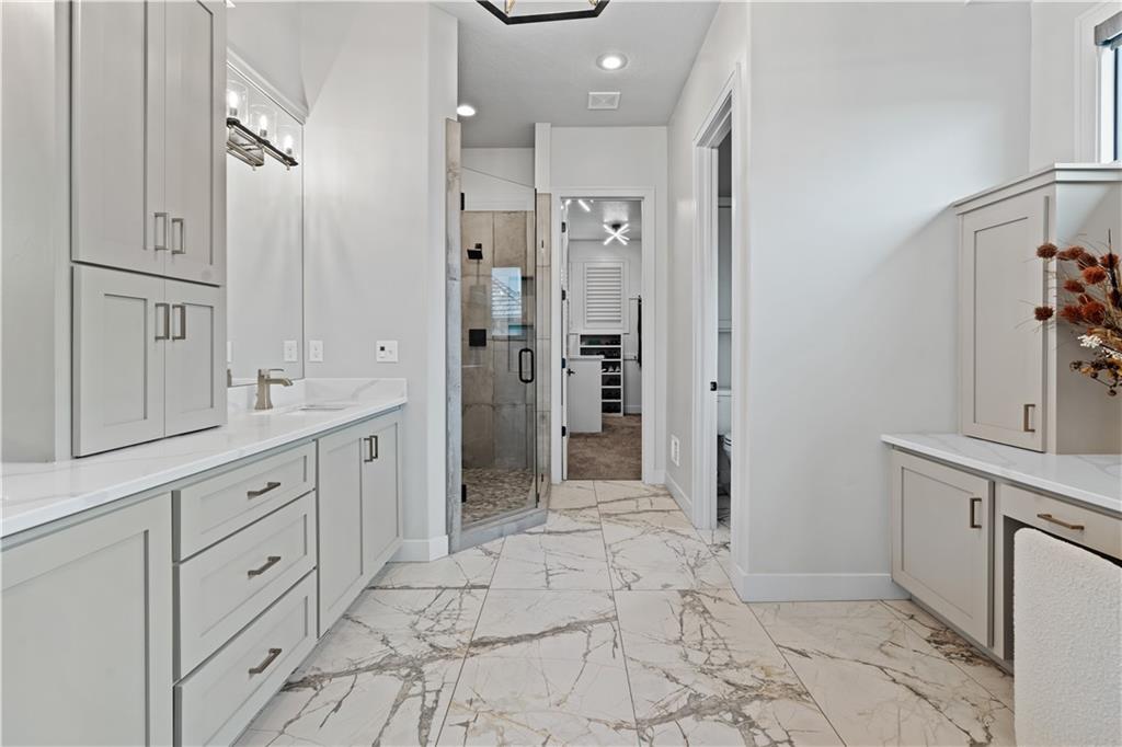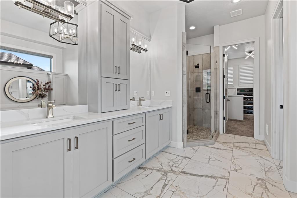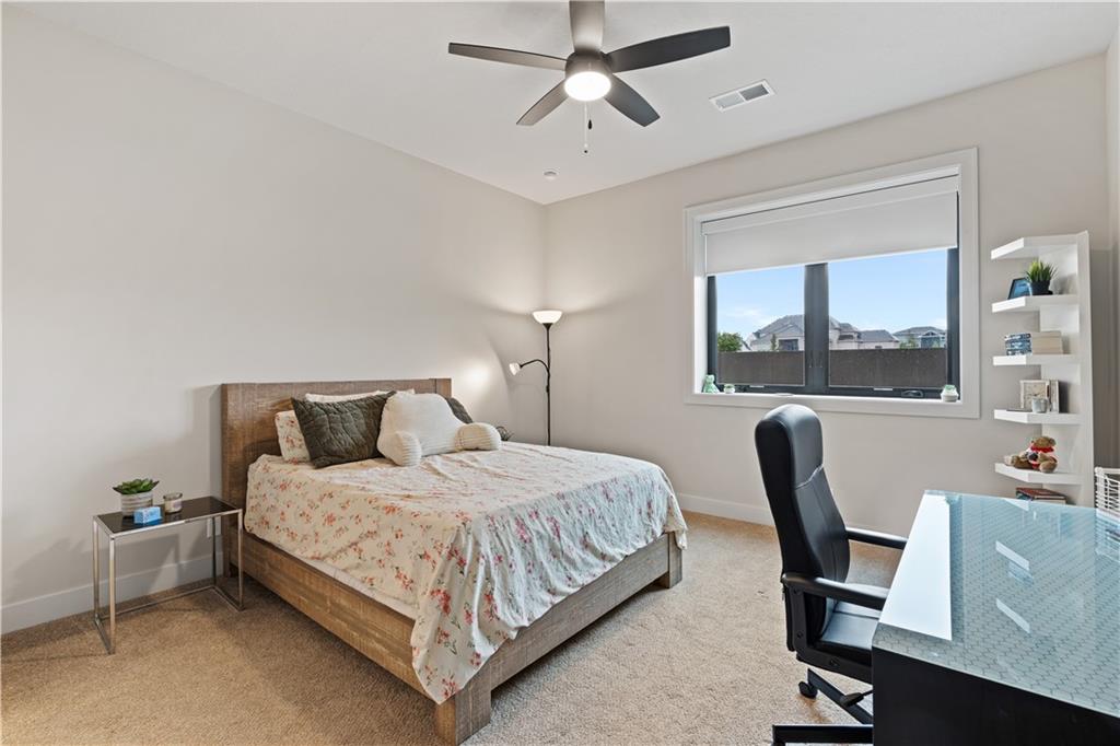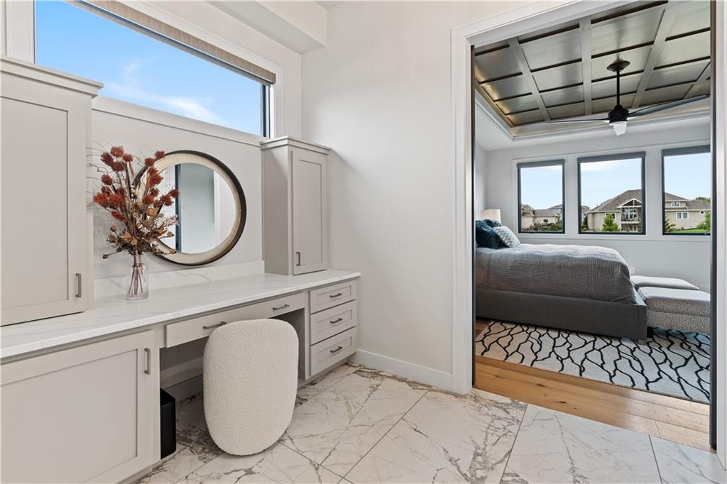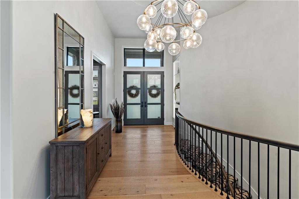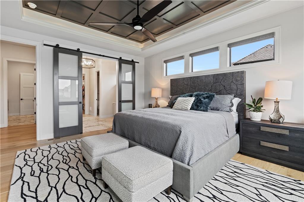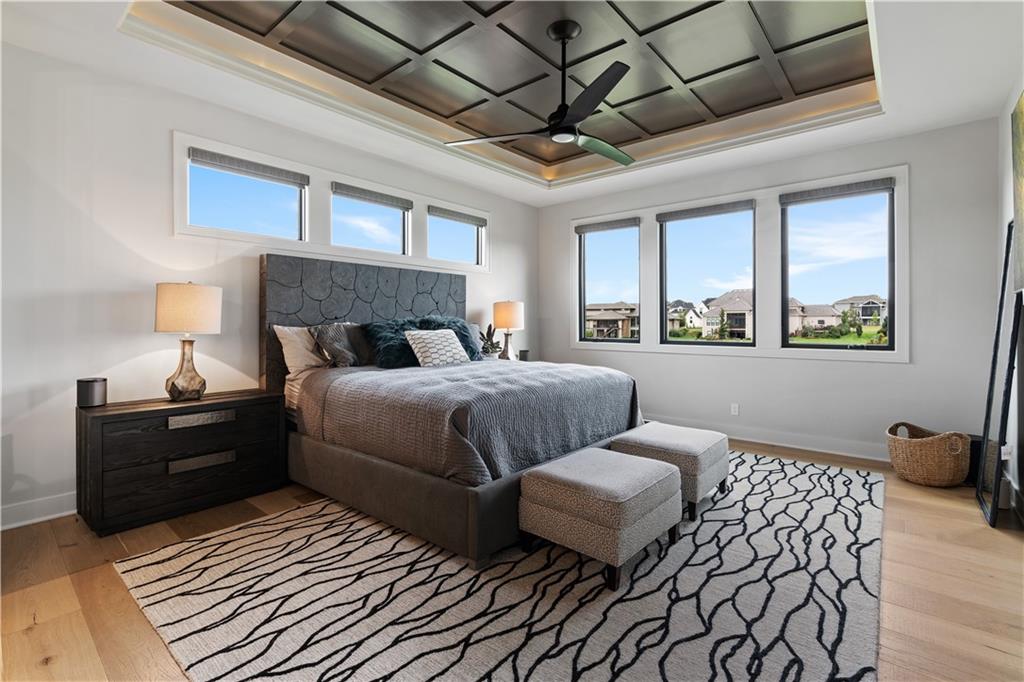 Poised within the prestigious Blue Valley School District, this award-winning Don Julian custom estate embodies the pinnacle of luxury living. Overlooking serene waters and dancing fountains, the residence offers a rare harmony of architectural excellence and natural beauty. The tranquil setting is best savored from the expansive main-level heated covered deck that connects the stunning four-seasons room. Every detail within reflects masterful craftsmanship and thoughtful design. With architectural LED lighting both interior and exterior, highlights the home's contemporary elegance. On the main level, the entrance meets you with glowing hardwoods that flow throughout both levels. The gourmet kitchen, appointed with Wolf appliances and luxurious finishes, anchors the open-concept living area—ideal for both intimate gatherings and grand entertaining. In the great room, remote-controlled window treatments reveal breathtaking lake views framed by cascading fountains.A graceful staircase leads to the lower level, designed as a private retreat and entertainment haven. Here, three ensuite bedrooms with walk-in closets complement an elegant wet bar, family recreation space, and a private music room—perfectly suited to transform into a wine cellar or recording studio. The suspended garage's unfinished space below offers endless possibilities like a home theater. Basement walkout access extends the living experience outdoors connecting to the patio and water views. Advanced home technology with a dedicated network hub with LUXUL gigabit switches, a PANAMAX MR4000 system, pre-wired for security system and in-ceiling Sonos speakers that encompasses the home in sound on both levels and the master bedroom.Enjoy year round energy efficiency with upgraded insulation and two laundry rooms for time efficiency. Blending timeless sophistication with modern innovation, this remarkable estate is more than a home—it is a statement of artistry and lifestyle in Terrybrook Farms.