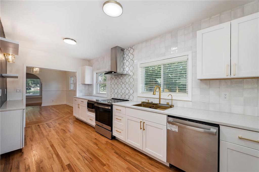 Amazing three bedroom, two bath home, fully redone from top to bottom with all new HVAC, electrical, plumbing, water heater, window and interior finishes. Gorgeous hardwood floors flow throughout. The spa like primary bathroom features a freestanding garden tub, creating the perfect oasis. Bright white kitchen with stylish accent colors and detailed tile work. Less than fifteen minutes from downtown Kansas City and the Country Club Plaza. Unfinished basement offers plenty of storage space. Detached two car garage plus additional carport for extra parking. Move in ready and designed to impress!