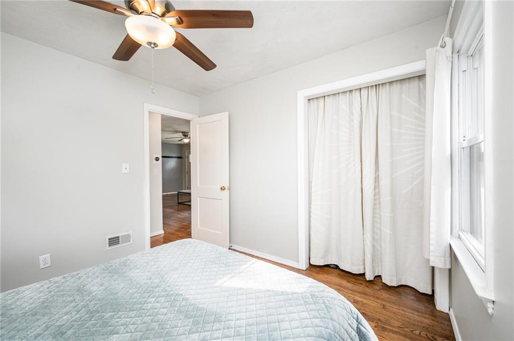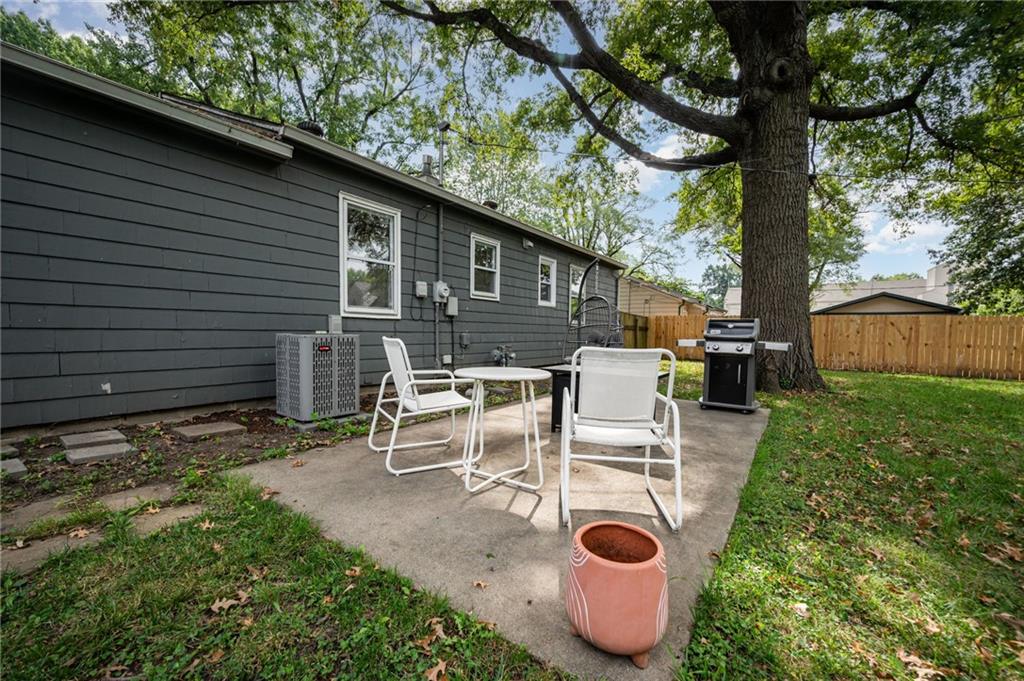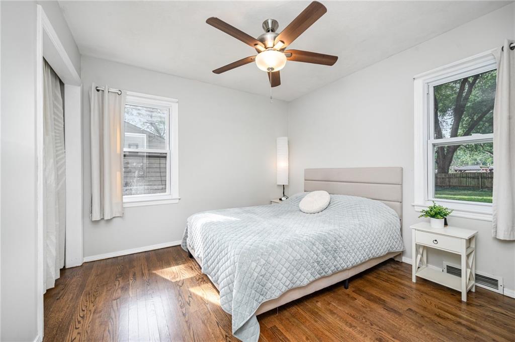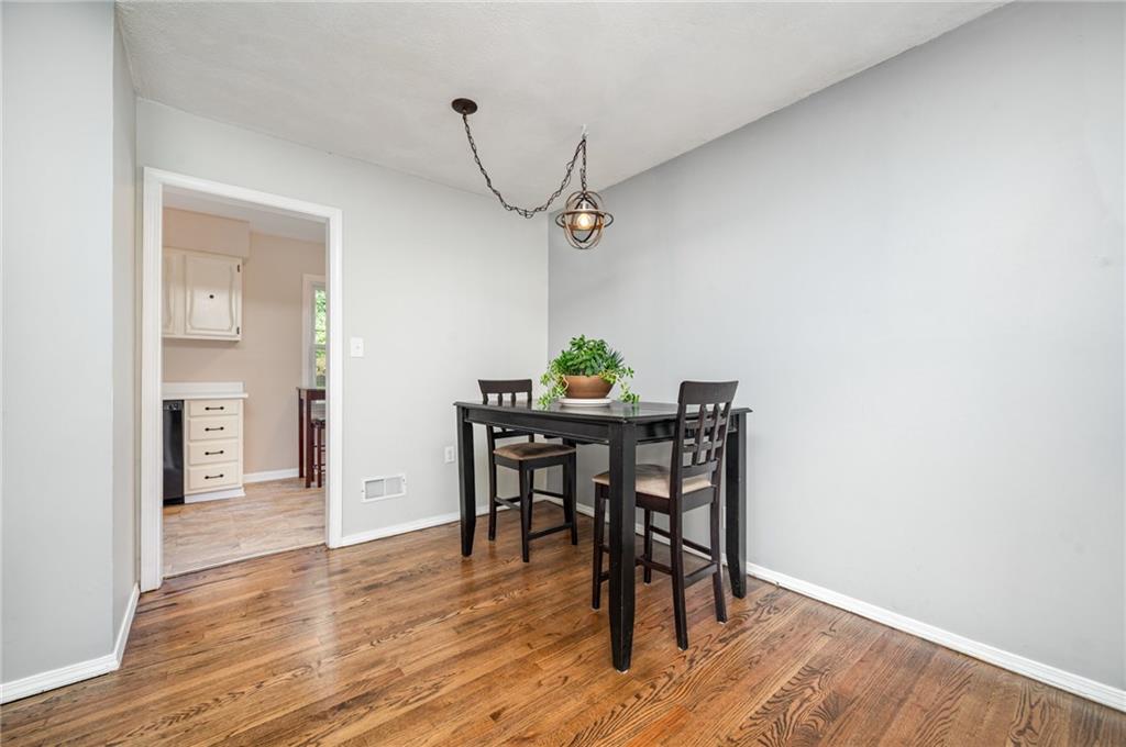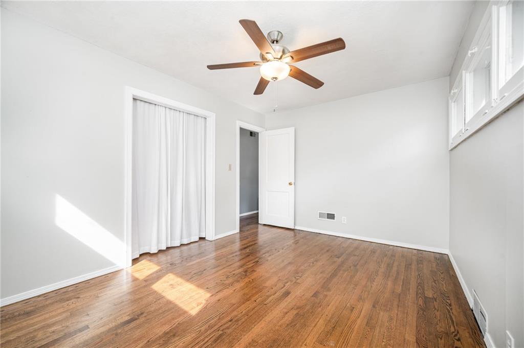 Welcome to this ranch-style home featuring a brand-new front porch and a spacious fenced lot. Inside, refinished hardwood floors flow through the living room and bedrooms. A foyer opens to the dining and living rooms for an easy, comfortable layout. The kitchen offers space for casual meals, and both bedrooms include ceiling fans and closet storage. The updated bathroom adds a fresh touch. Downstairs, the full basement provides plenty of additional storage with built-in shelving. Newer HVAC & water heater. Outside, the backyard is ideal for outdoor activities. Conveniently located near shopping, dining, and highways. This home blends comfort with everyday convenience. New in 2025 - Roof, Backyard storm-door, Halo Water Filtration. New in 2024 - HVAC & water heater.