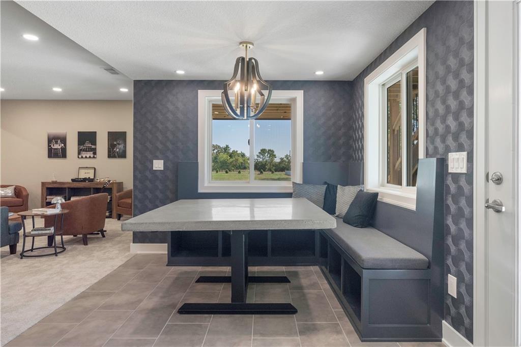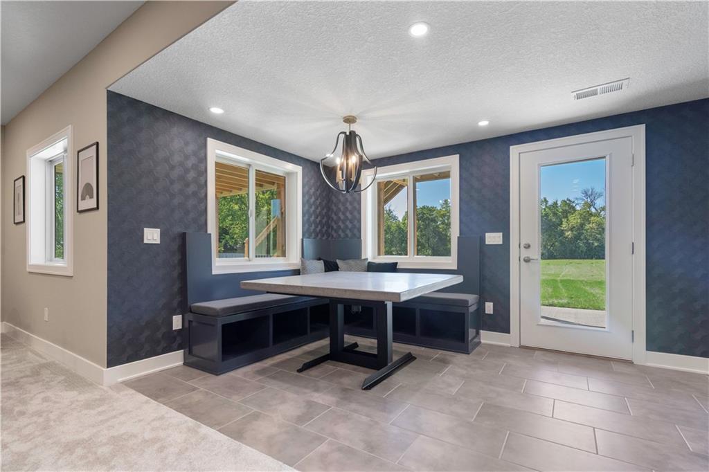 BRAND NEW Reverse 1.5 story by PCDI Homes! This stunning 5-bedroom, 4.5-bath home offers over 4,000 sq. ft. of expertly designed living space on a large 2.51-acre lot. With thoughtful details at every turn, this property combines high-end finishes, modern function, and outdoor living. The main level features soaring 12’ ceilings, white oak hardwood floors, and an open layout anchored by a custom fireplace with wood and tile accents. The gourmet kitchen is a showstopper, boasting a 10’ island, quartz counters, stainless steel appliances, double ovens, prep kitchen, custom tiled backsplash, and built-in hutch in the dining area. The luxurious main-floor primary suite is a true retreat, featuring a vaulted ceiling with wood beams, a cozy coffee bar, and private deck access for enjoying your morning cup with a view. The spa-inspired bath offers a double vanity with quartz counters, an oversized custom-tiled shower with bench, and a freestanding soaking tub. A spacious walk-in closet with tall ceilings and pull-down rods provides smart storage and convenience. Complemented by two additional bedrooms on the main level with a custom-tiled bath and a powder room bath off the entry. A convenient laundry is located on both levels. The finished lower level is an entertainer’s dream with a spacious rec room, wet bar, game area, plus two more bedrooms and two full baths. Car enthusiasts will love the oversized 4-car garage with workshop, sink, epoxy flooring, and a car lift. Outdoor living shines with a covered deck, patio, and firepit — perfect for gatherings. Located in the sought-after Basehor-Linwood school district, this property offers space, style, and sophistication inside and out. *BUILD YOUR DREAM OUTBUILDING / MANCAVE ON THE PROPERTY*