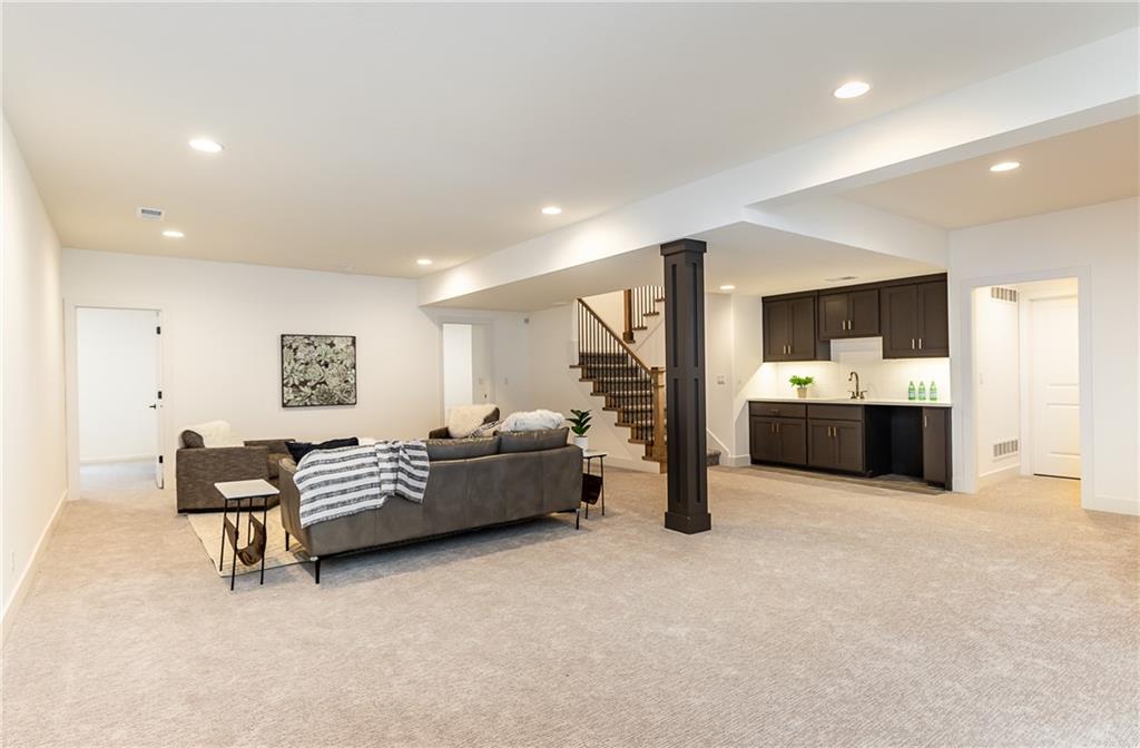The Riviera by SAB Homes sits on Lot 62 in Southern Meadows and is currently at the mechanical stage—scheduled for completion in January 2026. This stunning reverse 1.5-story plan showcases SAB’s brand-new modern exterior, highlighted by a grand double-door entry, modern garage doors and incredible curb appeal. The main floor features soaring ceilings and expansive windows that flood the home with natural light. A front secondary bedroom offers flexibility for guests or a private home office. The gourmet kitchen is designed with custom cabinetry, a large center island, and a seamless flow into the great room, where a striking fireplace serves as the focal point. Step outside to the 16'10" x 12' covered deck with adjoining patio—perfect for entertaining while enjoying incredible backyard views on an oversized flat lot. The luxurious primary suite includes a spa-inspired bath with freestanding tub and a spacious walk-in closet. A convenient drop zone and laundry are located just off the garage. The finished lower level expands your living space with two additional bedrooms, a rec room, a rare half bath, and a stylish bar area—ideal for game days, hobbies, or hosting gatherings. Home is at finish stage and will be complete feb 2026