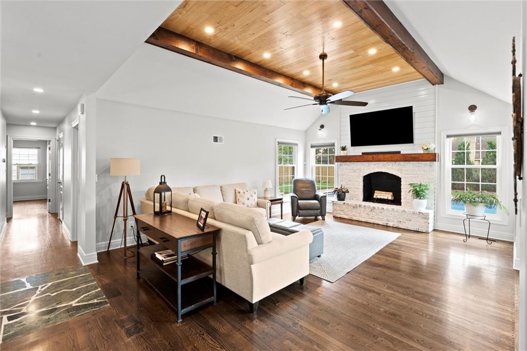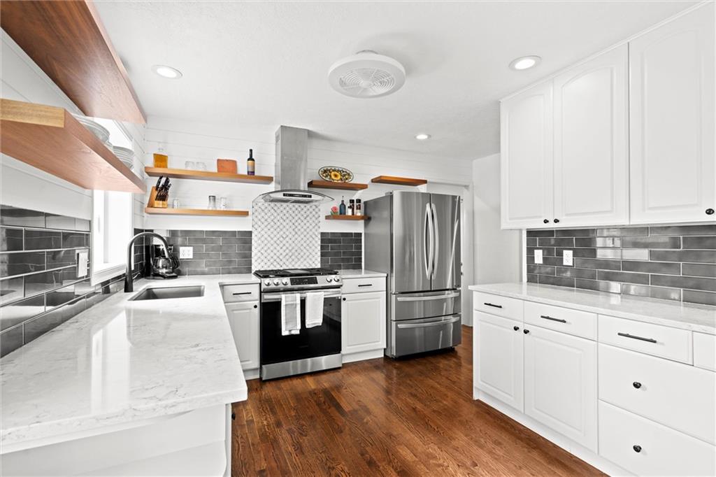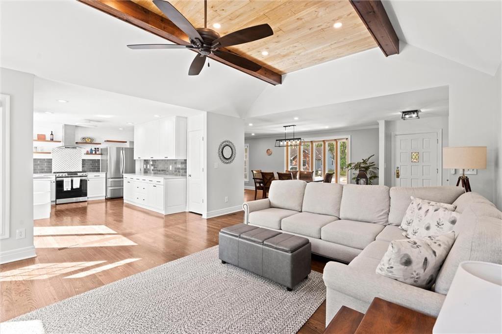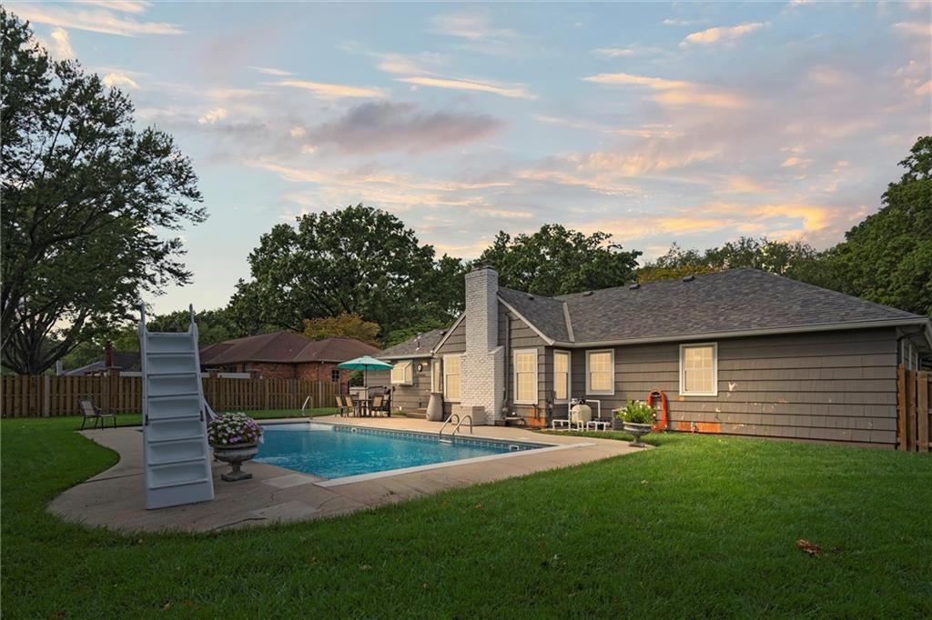 Price Improvement! Beautifully Remodeled Ranch in Sought-After Brookridge Estates – First Time on the Market in 20 Years! Welcome to this spacious and impeccably maintained 4-bedroom, 2.5-bath ranch home in the highly desirable Brookridge Estates. Thoughtfully updated throughout, this home seamlessly blends modern upgrades with timeless charm. The heart of the home is the stunning remodeled kitchen, featuring quartz countertops, custom cabinetry, new sink, backsplash and SS appliances. Gleaming hardwood floors flow throughout the main level, complementing the bright and airy family room with its vaulted ceiling, cozy fireplace, and an abundance of natural light. All four bedrooms are generously sized and located on the main level, each offering ample closet space. The bathrooms have been beautifully remodeled with high-end finishes and attention to detail. The finished lower level adds even more living space with LVP flooring, a spacious rec room, bar, convenient half bath, and a large storage room. Major system updates offer peace of mind for years to come: new roof (2022), new furnace (2022), new water heater (2024), new windows/sliding door and James Hardie lap siding on the front of the home. An in-ground sprinkler system keeps the professional landscaping lush and green. Step outside to your private backyard oasis – perfect for entertaining – with a saltwater pool, manicured landscaping, and a privacy fence creating a true resort-like setting. This is a rare opportunity to own a move-in ready home ideally located near shops, restaurants, Brookridge Golf Course, top rated Shawnee Mission Schools and easy highway access. Don’t miss it!