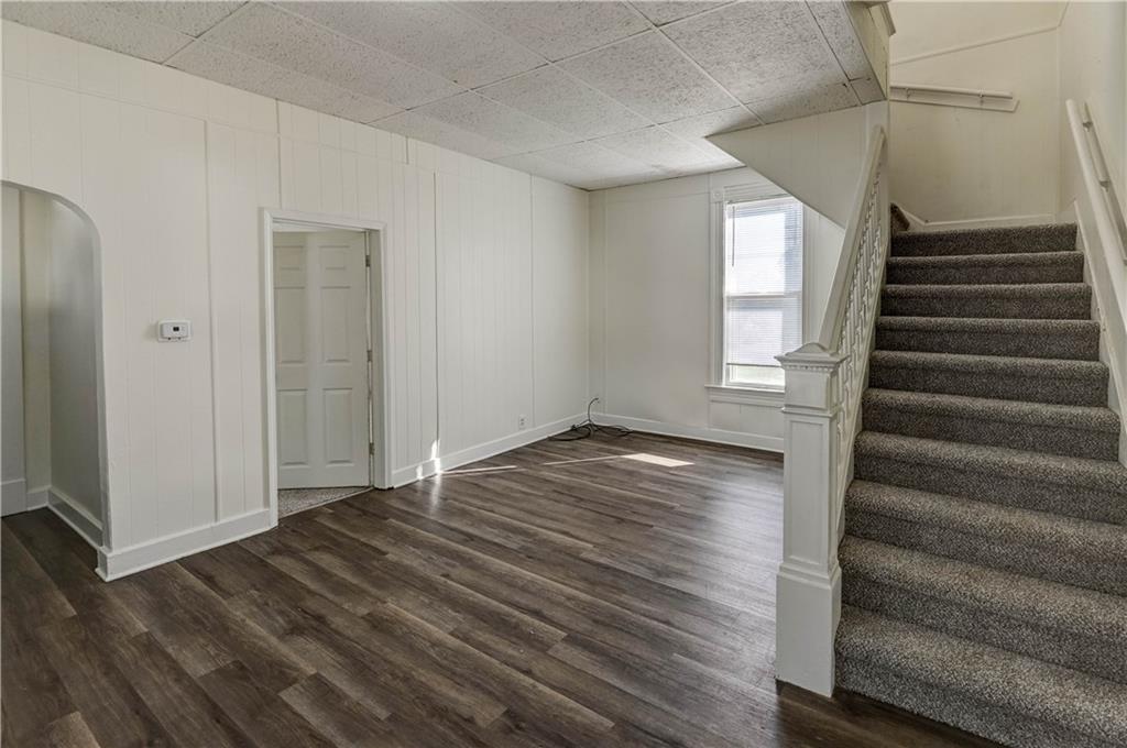 4 bedroom 1.5 bath home. Has newer paint and flooring. Home has bedroom on main level and 3 bedroom upstairs. Home does have a basement. Home also has detached 2 car garage.