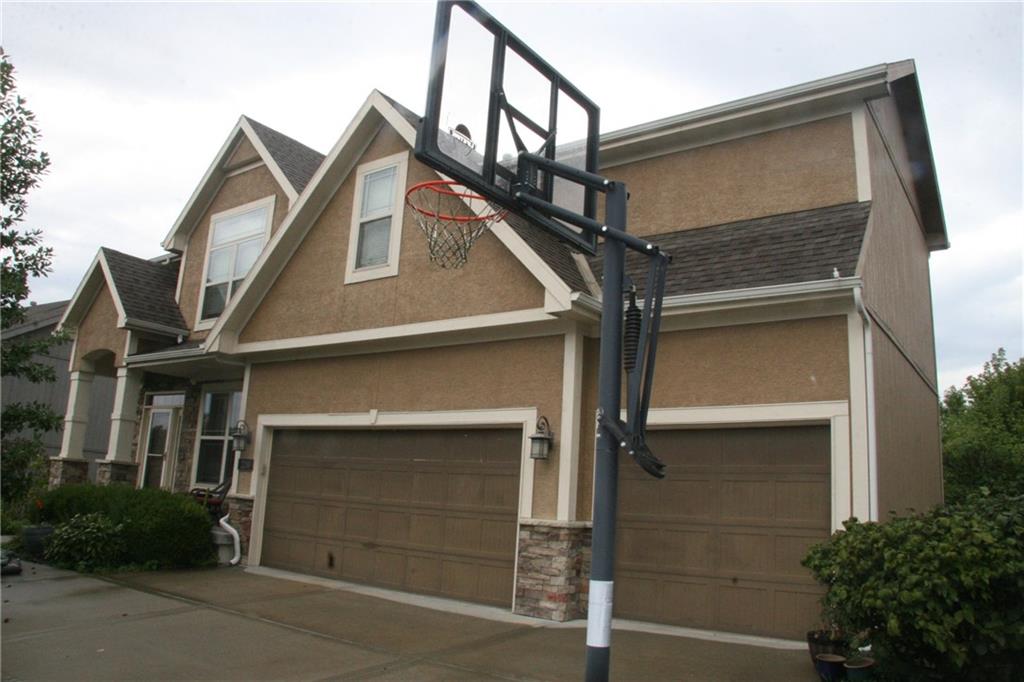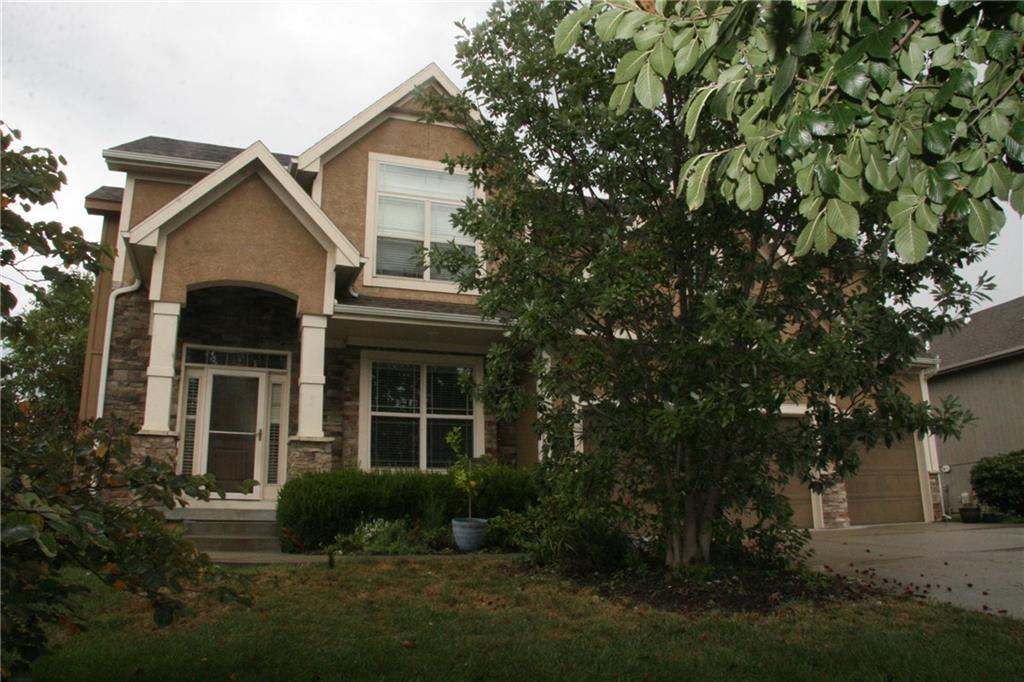 Well maintained 1 owner home in sought after Staley Hills. This is the expanded Lexington II by McFarland. Seller loves the neighborhood, their neighbors and its convenient location but no longer needs all the space and ready to downsize. You'll love the openness of the main level with gleaming hardwood floors and abundance of windows allowing for lots of natural light! Formal dining area makes ideal office, additional living area or as the seller has done, the perfect place for your grand piano. The great room has a fireplace with beautiful stacked stone surround and curved wall of windows overlooking the backyard. Spacious kitchen is an entertainer's dream with its large island including bar area for seating or the perfect buffet serving line, granite counters, abundance of cabinets, many with roll out shelves plus a HUGE walk-in pantry, stainless appliances featuring a gas range and a new dishwasher. The large eating area opens onto the covered patio which extends into the expanded patio the seller included when building the home. The primary suite features a raised ceiling with indirect lighting, LARGE walk-in closet, double vanity (granite) with a cabinet stack, tiled floor, corner whirlpool and separate shower room with oversize tiled shower. Secondary bedrooms each have a vaulted ceiling, ceiling fan and private bath access. Bedroom 2 has a walk-in closet. Lower level family room is great for movie nights and great hang out area for kids and adults of all ages! There's a 5th bedroom with a walk-in closet but this room also makes a great private office, work out room, craft room or play room for all the kids' toys! There's also a 4th full bath in addition to unfinished storage areas. Enjoy the neighborhood pool, ponds and trails! Great location is close to stores, services, restaurants, entertainment and main roads for quick and easy access to KCI airport and downtown KC! Kids can walk to the highly rated emementary and high schools.
