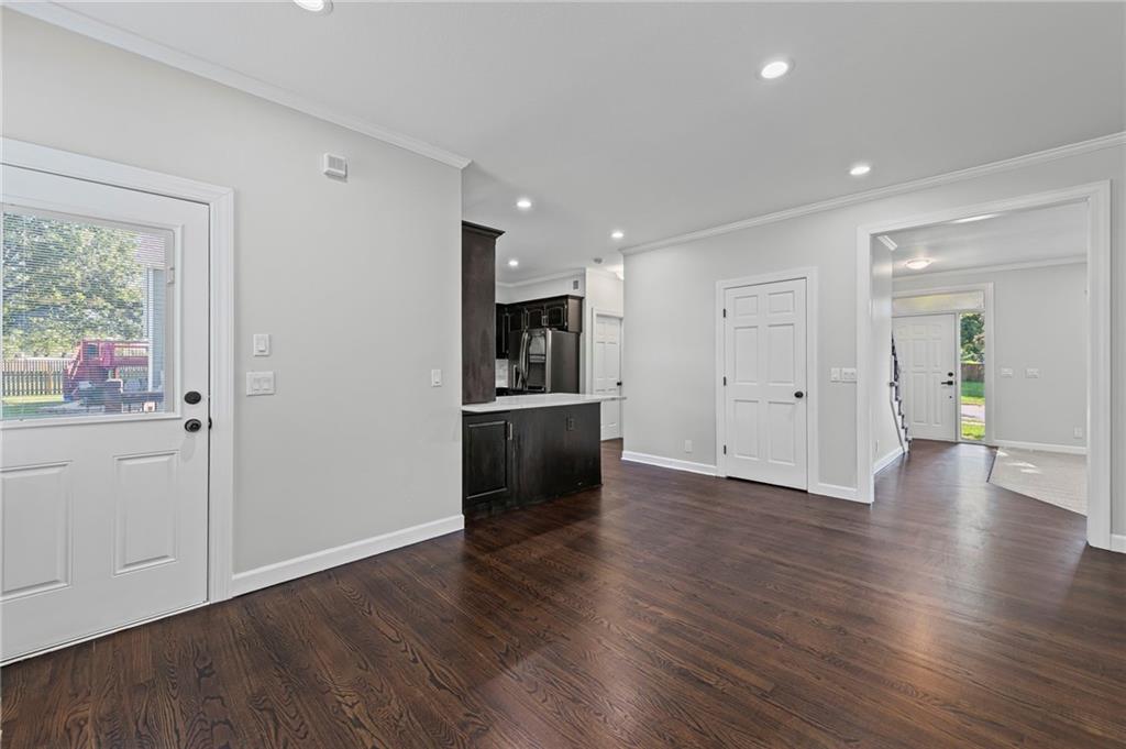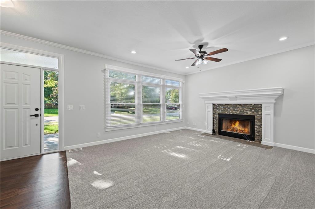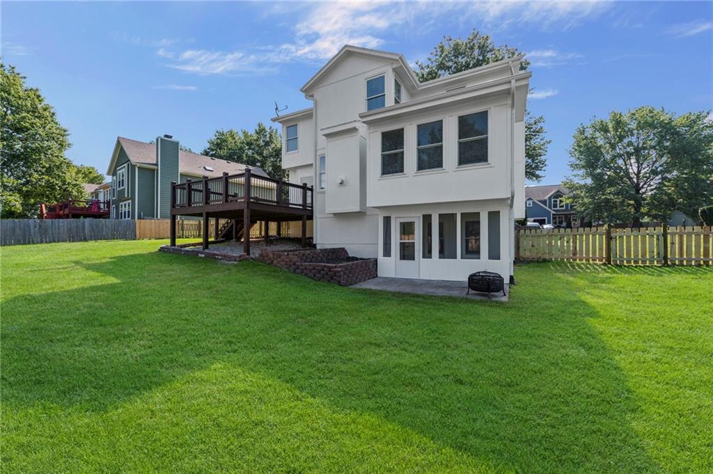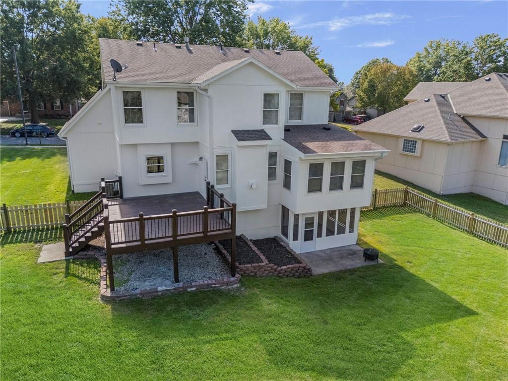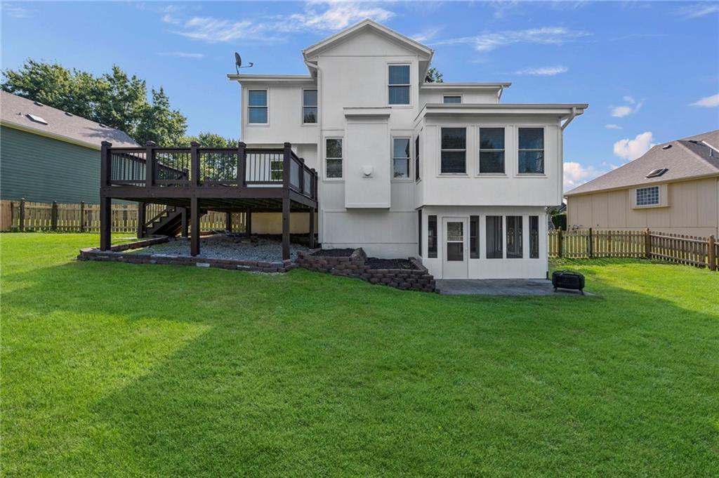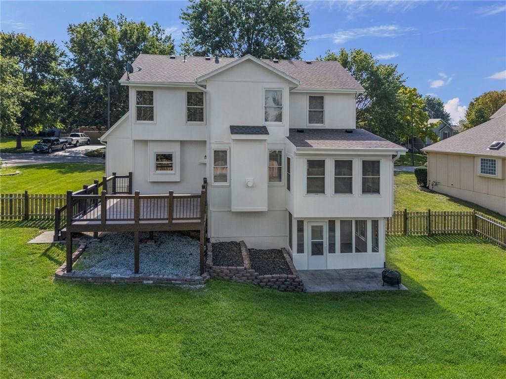 NEWLY REMODELED HOME CHECKS ALL THE BOXES! 4 bdr, 2 story, finished walk-out basement, two laundry areas, two fireplaces, nice sized garage with plenty of cabinets, spacious deck, huge fenced in backyard, close to shopping and easy access to 71 to 435/470. Easy access to the Kansas side. SO MUCH NEW FOR THE PRICE!!! Freshly painted, exterior and interior, landscaped, new concrete front walkway. Kitchen and Hearthroom room updated with stained cabinetry, refinished hardwoods, new backsplash, sink and faucet. Master bedroom/bathroom have been remodeled with barn door, new vanities/sinks/hardware...new toilet closet...amazing new huge 7.5 x 5.5 walk-in tiled shower! Large walk-in master closet w/natural lighting. Walk-in master closet has laundry hookups/stackable washer & dryer...such convenience to have laundry on two levels! Master bedroom had French Doors...Barn Door to Master Bath and another adjoining door for added convenience to 4th bedroom/office/sitting room/nursery. Updated hall bath and half baths. Enjoy family evenings in the large finished walk out basement with all new flooring. Finished basement has half bath as well as bar/sink area w/additional cabinetry...walks out to an enclosed sun room/porch for additional space/entertaining. Peaceful early mornings sitting on the spacious deck sipping coffee overlooking the back yard. Back yard would be great for fall barbecues and soccer games. This home with its family room and hearth room fireplaces exudes comfort and coziness. Forget projects...this home is ready for you to move in and relax!