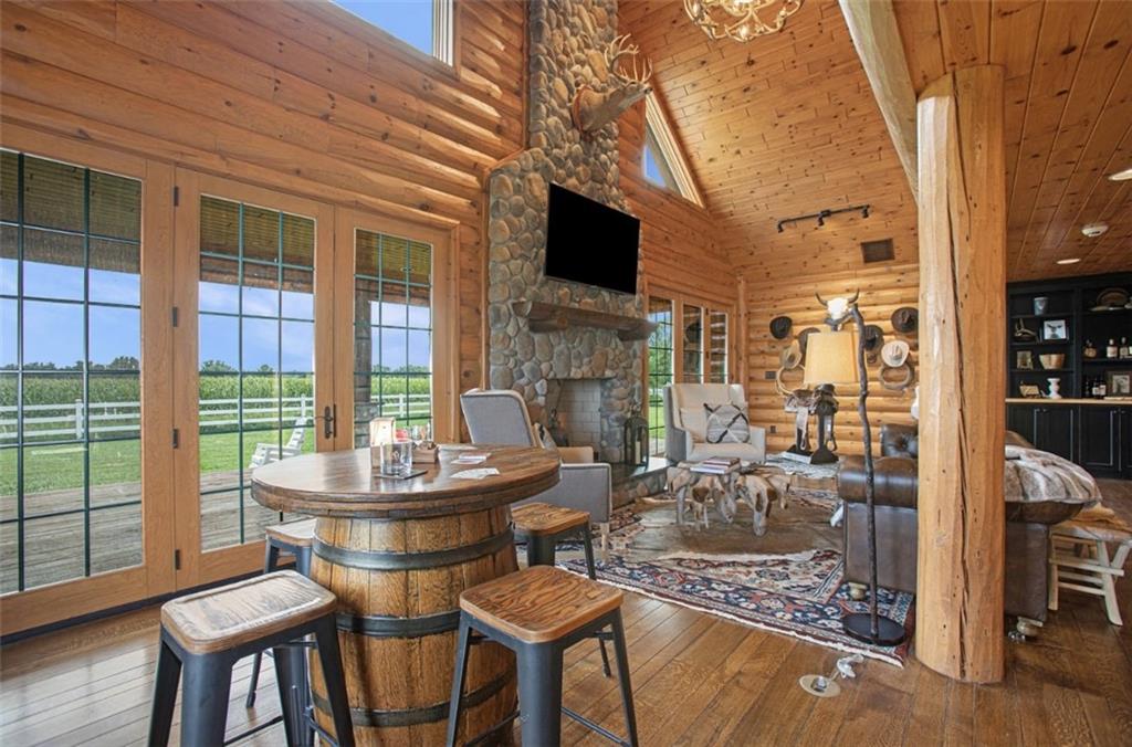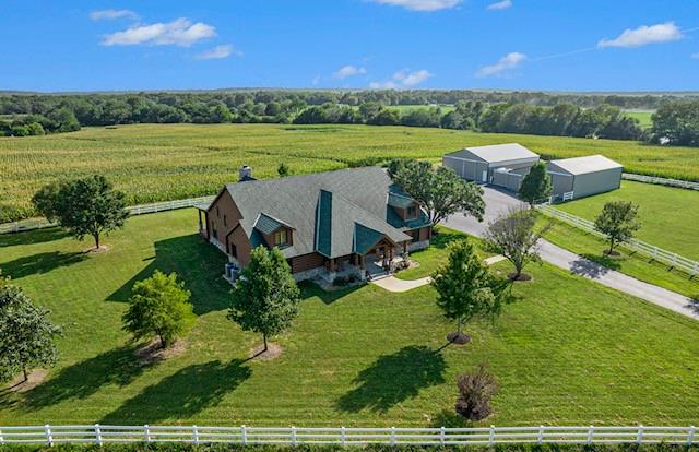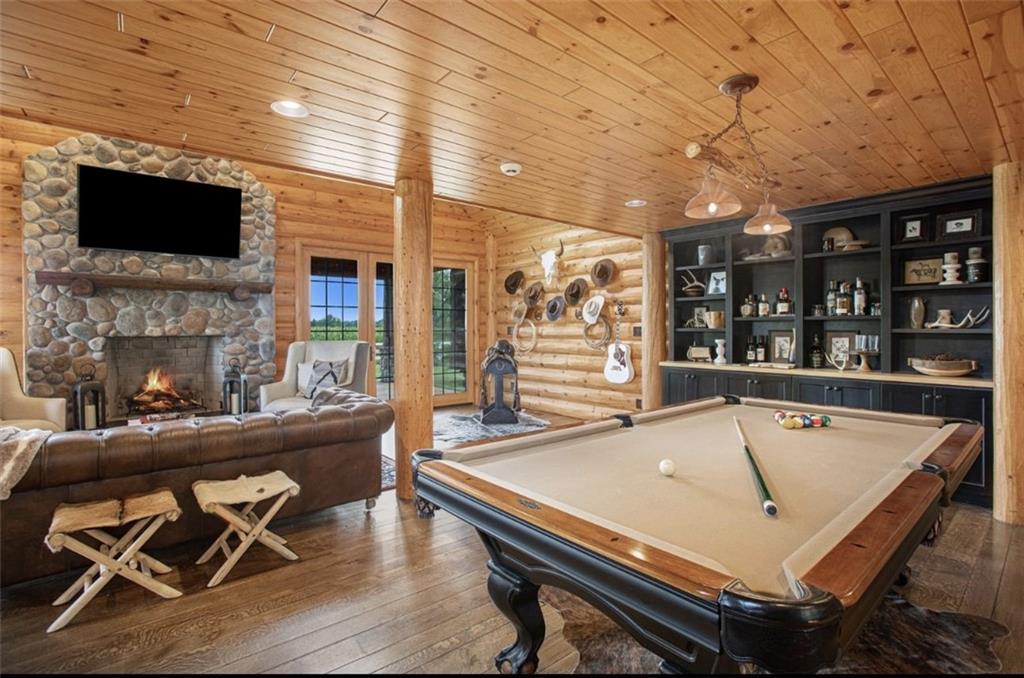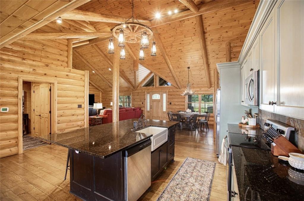 Discover the charm of rustic living at 19295 A Highway 52 in Pleasanton, KS. This beautiful log cabin-style home is set on a picturesque 15-acre parcel, offering a perfect blend of natural beauty and modern comfort. The residence features 4 bedrooms and 3 bathrooms, spread over 3,149 square feet of living space, each corner thoughtfully designed with natural wood details and expansive windows that fill the home with light. Inside, enjoy the open-concept layout that seamlessly connects the living, dining, and kitchen areas—ideal for both everyday living and hosting gatherings. The kitchen, equipped with modern amenities, provides a functional space for culinary enthusiasts. The expansive acreage surrounding the home presents endless opportunities for outdoor enjoyment. The land has a beautiful tree line to the west, offering privacy and a sense of seclusion, yet ample open space invites recreational activities. Additional structures include a 40x56 pole barn, a 42x56 barn, and a 8x12 shed, providing versatile options for storage or hobby uses. This log cabin retreat in Pleasanton is more than just a home; it’s a lifestyle choice, inviting you to experience the tranquility and beauty of rural living with the convenience of modern amenities. Explore the potential of this unique property today.
