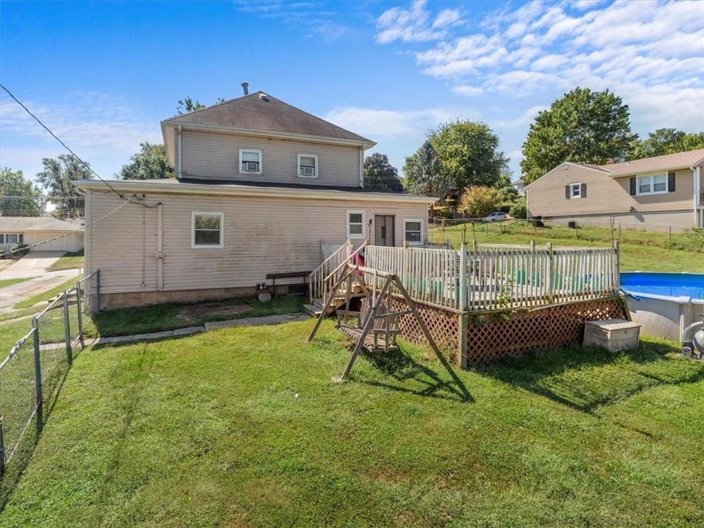 Welcome to this spacious 4-bedroom, 2-bath home, perfectly positioned on two lots totaling just under half an acre. Inside, you’ll find generously sized rooms throughout, including a convenient main floor primary bedroom. Step outside to enjoy multiple outdoor living areas with two decks, a covered front porch, and a fully fenced yard provide plenty of space for relaxation and entertaining. A massive hard sided above-ground pool is ready for summer fun, making it the ideal spot to beat the heat. With its blend of indoor comfort and outdoor amenities, this property offers a unique opportunity you won’t want to miss!