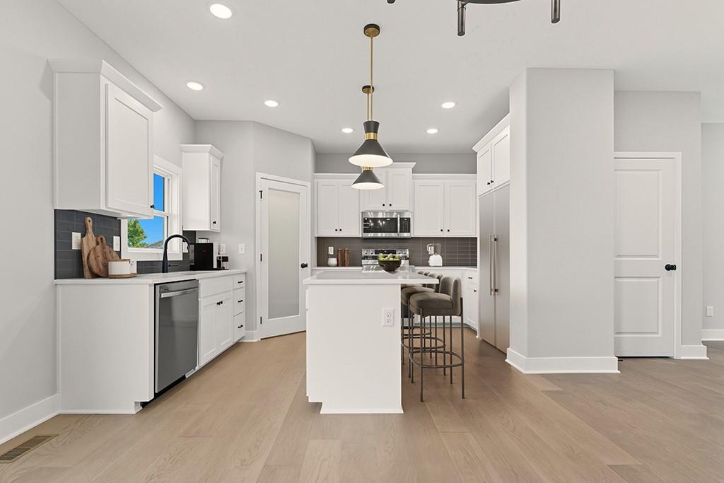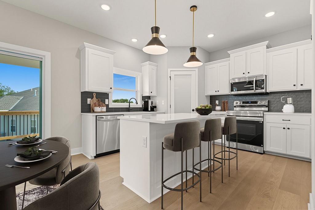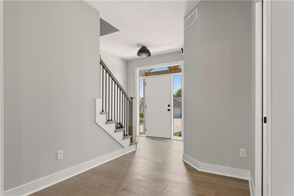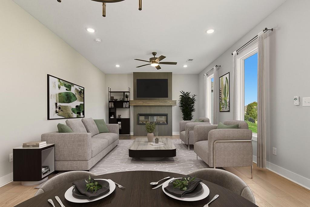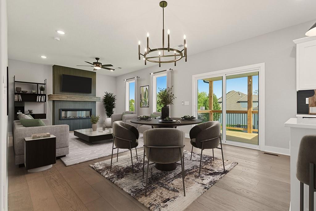 “The Carlyle", the latest innovative floorplan from Dave Richards Homebuilding, INC. The main level features a private office, open concept kitchen / family / dining area and a conveniently located half bath. You'll love the ample storage space in the U-Shaped kitchen design, which also allows for a sink with window overlooking the backyard! An island and walk in pantry complete the kitchen, which opens to the large dining area and big family room with fireplace and wall of windows offering lots of natural light. Upstairs you'll find four spacious bedrooms, including the owner's suite which features dual walk-in closets & a spacious bathroom with dual vanities. The large second full bath upstairs also boasts two vanities and shower/tub combo to accommodate your needs. Three other generously sized bedrooms finish out the upper level-- one with its own walk in closet. The walk in laundry room is also featured on the bedroom level, making that household chore as convenient as possible! Large Yard features an irrigation system, make lawn care much easier. Four Pillars offers walking trails, is serviced by the award winning Grain Valley School District, included the coveted Prairie Branch Elementary School. You're also within walking distance of Grounds Park-- which offers miles of walking/biking trails and a community lake. Exceptional quiet location, yet just minutes from the Adam's Dairy Shopping/retail corridor and easy access to I-70 for quick commuting around town. Beautiful home, fabulous community!