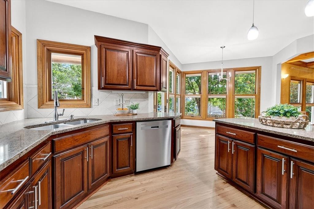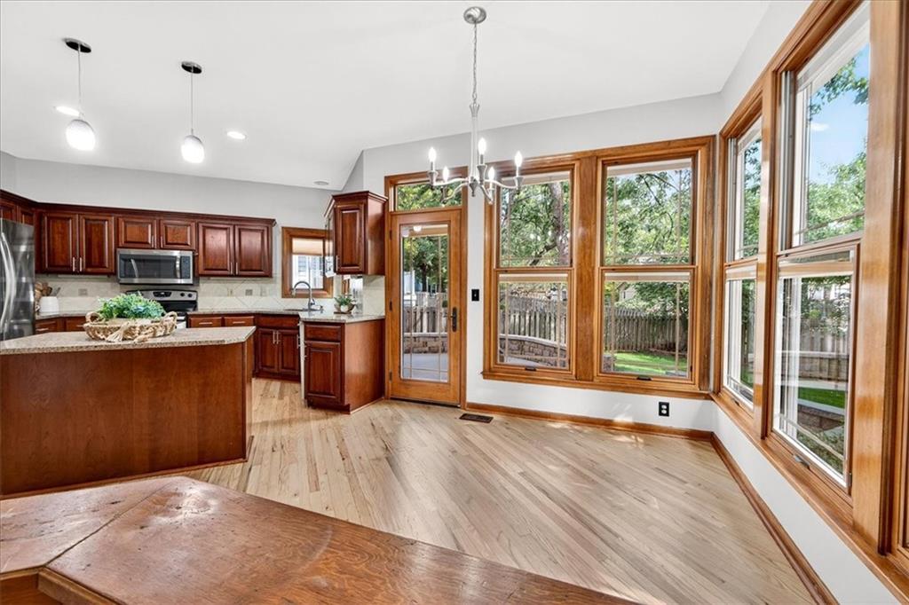Back on the Market with a recent $20K Price Reduction! This great home located in the highly rated Blue Valley School District and BV Northwest boundaries is well below appraised value - includes many updates which makes it an incredible opportunity for buyers! This beautifully updated 4 bedroom (all with walk-in closets) 2.5 bath home offers a perfect blend of style, function and location. Inside you'll find hardwood floors throughout, with the main level newly refinished for a fresh feel. The kitchen has been updated featuring stainless steel appliances, solid surface countertops, and refreshed cabinetry ideal for everyday living and entertaining. All above ground baths have been updated with granite countertops. Pella windows in kitchen and family room as well as a 3 year old HVAC offer energy efficiency. New stair carpet has been installed and many interior rooms have been freshly painted and new epoxy flooring in the garage provides a fresh new look. The home also features two laundry rooms - one on the bedroom level and one on the mail level and both sets of washer/dryers stay with the property. The finished basement features brand new luxury vinyl tile (LVT) flooring and adds a flexible space for a media room, playroom or office -there is an additional full bath in the unfinished portion of the bathroom that can be finished easily. Step outside to enjoy a lovely fenced backyard with a patio - perfect for gatherings, pets or play. The sprinkler system helps keep your lawn lush and green, while new gutters and exterior paint refresh boost curb appeal and peace of mind. Located just a short stroll from the neighborhood pool, and only minutes from shopping, dining and conveniences, this home offers the best of community living in an unbeatable location. Don't miss your chance to own this move-in ready gem at a great price point in Kensington Valley-schedule your showing today!