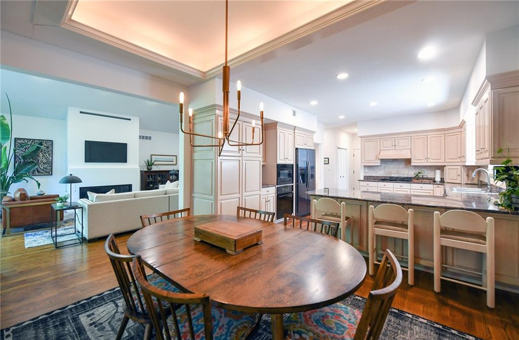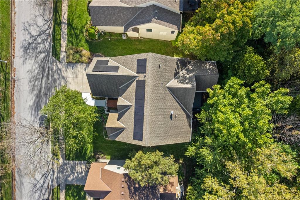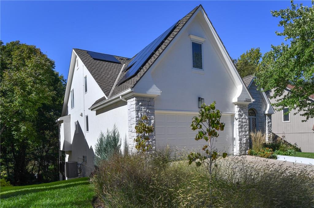 Enjoy single level maintenance provided living in the highly desirable south Kansas City Timber Trace community. Backing to mature trees and designed with both comfort and sophistication in mind, this 4-bed, 4-bath, 2-car garage home has been meticulously improved with quality finishes and thoughtful design. Features include a modern efficient floor plan, all season sunroom, generous eat-in kitchen with separate dining area, expansive deck with infrared heater and solar panels ensuring low energy bills for years to come. The current owners have made significant investments that include new HVAC, exterior paint, sidewalks, water heater, dining/sunroom lighting and attic insulation. However, the real gem of this home is the re-imagined primary suite that features a zero-entry steam shower, Kohler Sunstruck soaking tub, Kohler auto-flush bidet with heated seat, quartz-topped vanities, lighted mirrors, sconces, heated towel bar and custom duel closets with built-ins cabinets brings the spa experience to your new home. This house must be seen to be appreciated. Reasonable HOA fees include lawncare and snow removal.
