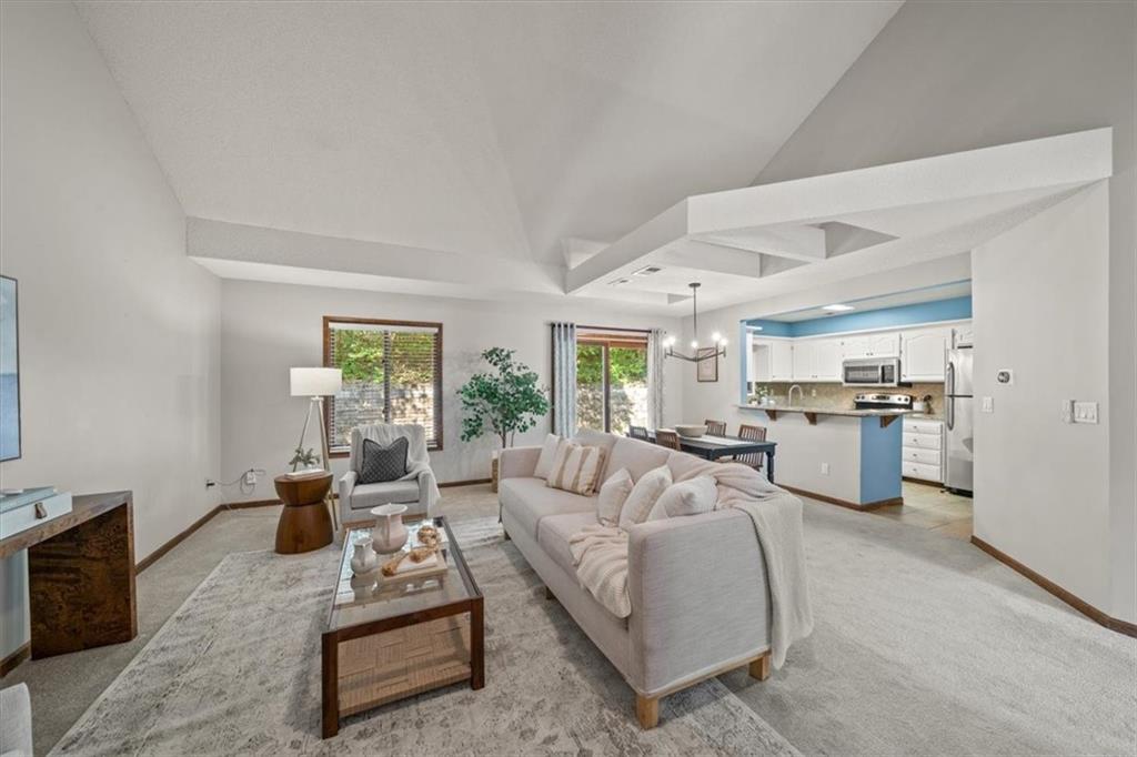 Welcome to Mission Lake! This maintenance-provided community offers a variety of amenities, including a boat dock, clubhouse, community center, exercise room, hobby room, swimming pools, social events, and scenic trails surrounded by nature. This townhome has soaring vaulted ceilings, a cozy fireplace, a private patio to enjoy a morning cup of coffee or glass of wine to top off your day, updated kitchen and main floor bathroom, plus a spacious primary suite with an extra room perfect for an office or hobby space. Located in southern Kansas City, it’s just minutes from Martin City's renowned spots like Jack Stack and Martin City Brewing, with easy highway access for seamless commuting. The HOA covers numerous services, including lawn care, snow removal, water, trash, roof repair and replacement, and siding maintenance. With its wealth of community amenities and extensive HOA coverage, this townhouse is a steal at its current price.