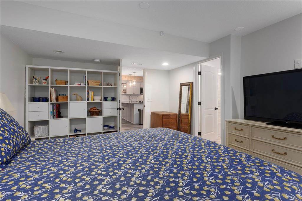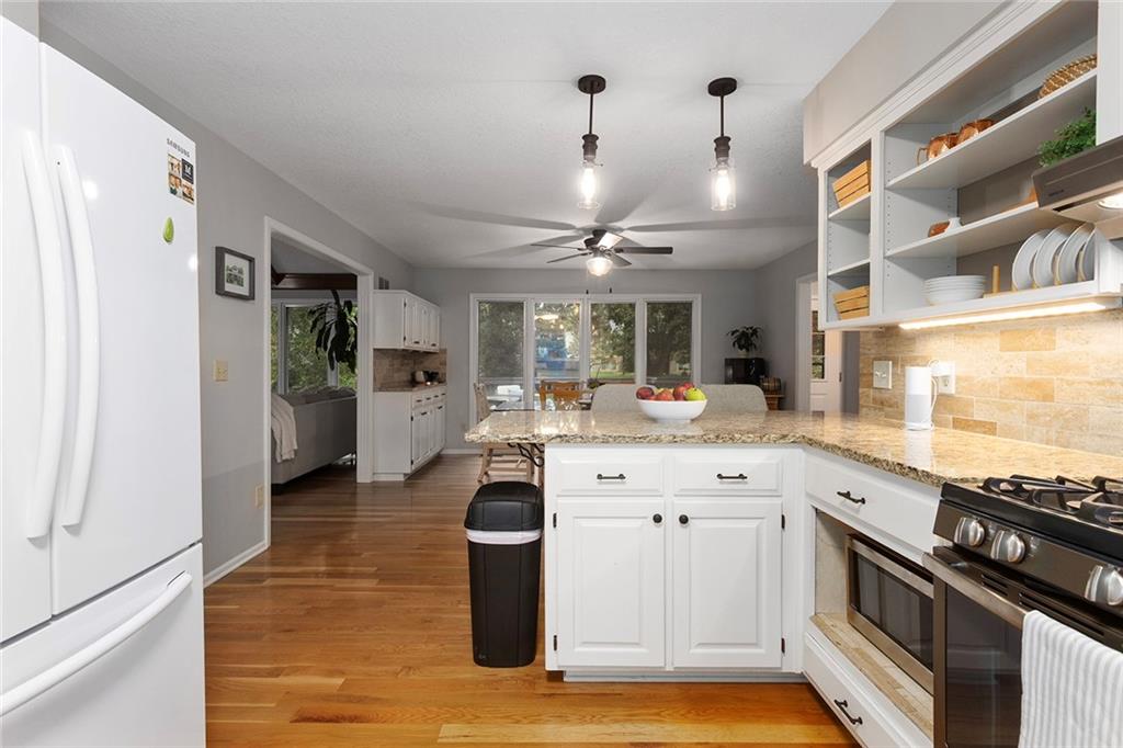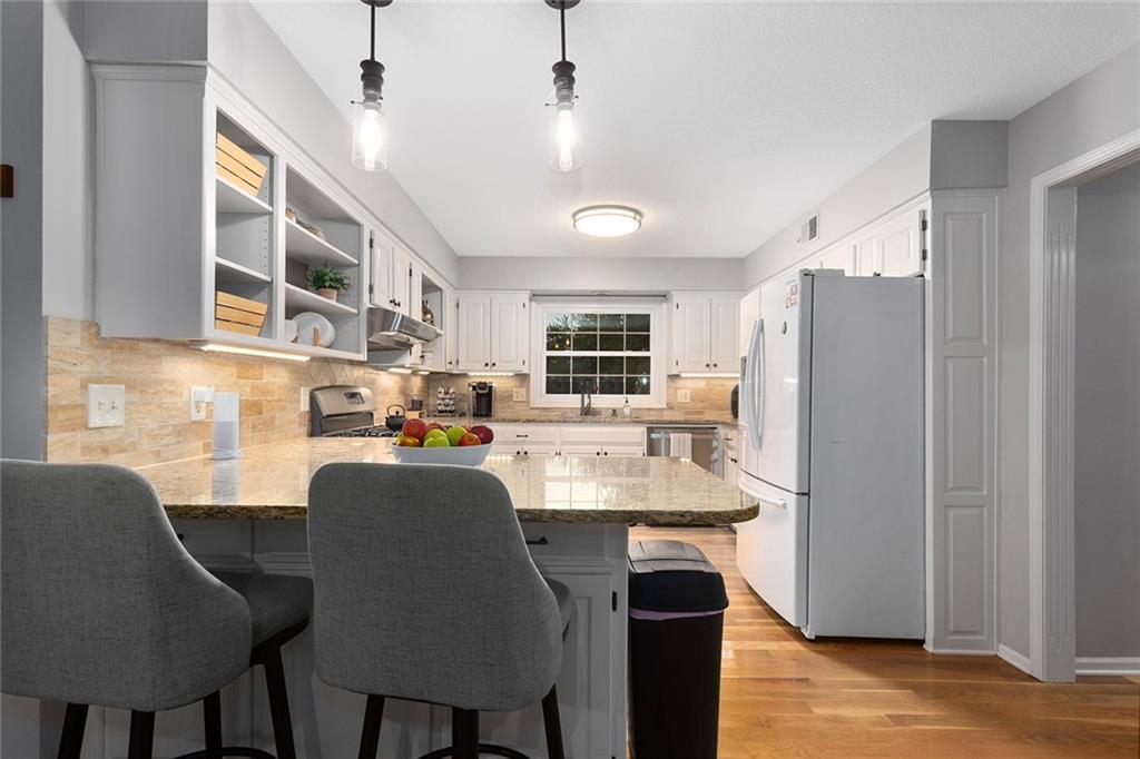 This charming 5-bedroom, 3.5-bathroom home in Lee's Summit offers more than meets the eye—boasting over 4,500 square feet of living space in the highly desirable Blue Springs South school district. Step inside to find beautiful wood floors, vaulted ceilings, granite countertops, and an abundance of natural light throughout. The open-concept main level features a large kitchen, expansive living room with fireplace, and a huge master suite that’s sure to impress. The walk-out lower level is truly like having a second home! Complete with a mother-in-law suite featuring its own full kitchen, living room, bedroom, and bathroom, it also includes a guest bedroom, rec room with wet bar, and a projector-ready movie area—perfect for entertaining family and friends. Outside, this home sits on over a half-acre treed lot with a partially fenced backyard, deck, and a utility shed for extra storage. The circle drive offers plenty of parking, while the thoughtful touches—like a custom dog door leading to a ramped dog house off the laundry room—make it unique and functional for every lifestyle. This home truly has it all: space, updates, character, and a one-of-a-kind layout ready to fit your family’s needs. Don’t miss your chance to make it yours!