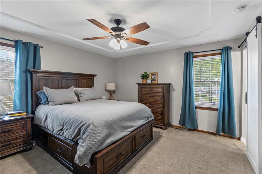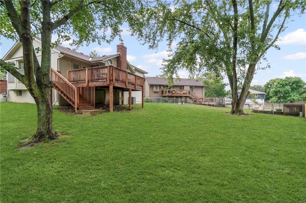 This Lee's Summit gem will win you over! Nestled in a cul-de-sac with mature landscaping and beautiful, winged brick detail. Kitchen features freshly painted cabinetry, window ledge perfect for plants, all appliances stay, plenty of counter space, eat-in kitchen space, as well as a dining room. Charming living room with cozy brick wood-burning fireplace, built-in shelving, vaulted ceiling with wood beam. Make your way to the upper level to find the full hall bathroom and two additional bedrooms on your way to your very own Primary Owner's Suite. Suite complete with walk-in closet, tray ceiling, and gorgeous remodeled bathroom. Spacious lower level offers ample storage. Extra deep garage with room for hobbies. Tree shaded backyard with large deck perfect for fall BBQs. Features newer furnace, AC, & deck. Roof is only 5 yrs old. Amazing location near parks, recreational options, restaurants, shopping, easy highway access, and highly rated schools. It's more than just a house, it's a home for creating memories!