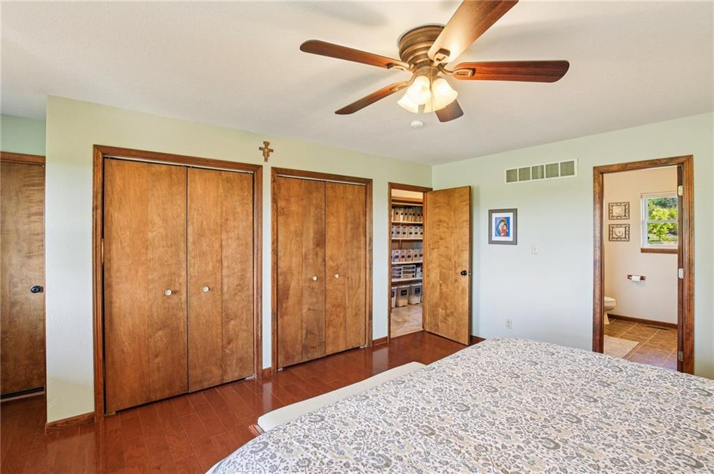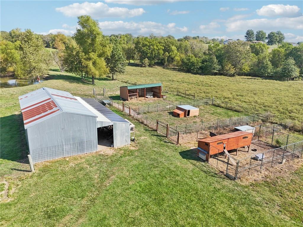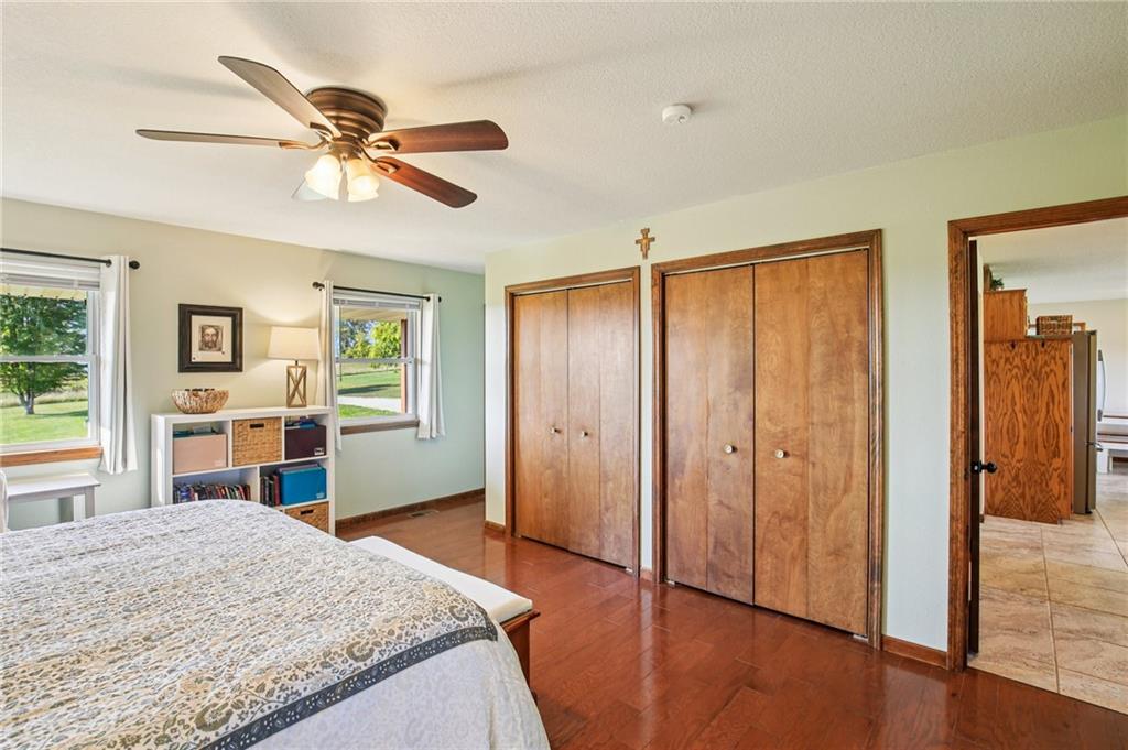 Low cost Geothermal Heating and Cooling! Acreage lifestyle with a fully stocked pond! Property offers opportunity for mini farm lifestyle. Large family room in lower level with full bath and bedroom and washer and dryer. Walkout door to allow for privacy for multi-generational living. Main floor features additional washer and dryer and primary suite. Living room and country kitchen finish out this large space. Upper level has two large bedrooms with a full bath. Lots of storage areas! Quick! Take a Look and Make this House Your New Home! Buyers to verify all measurements and claims.