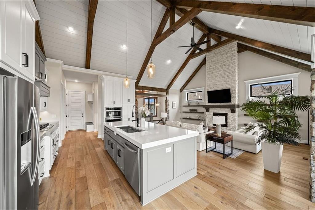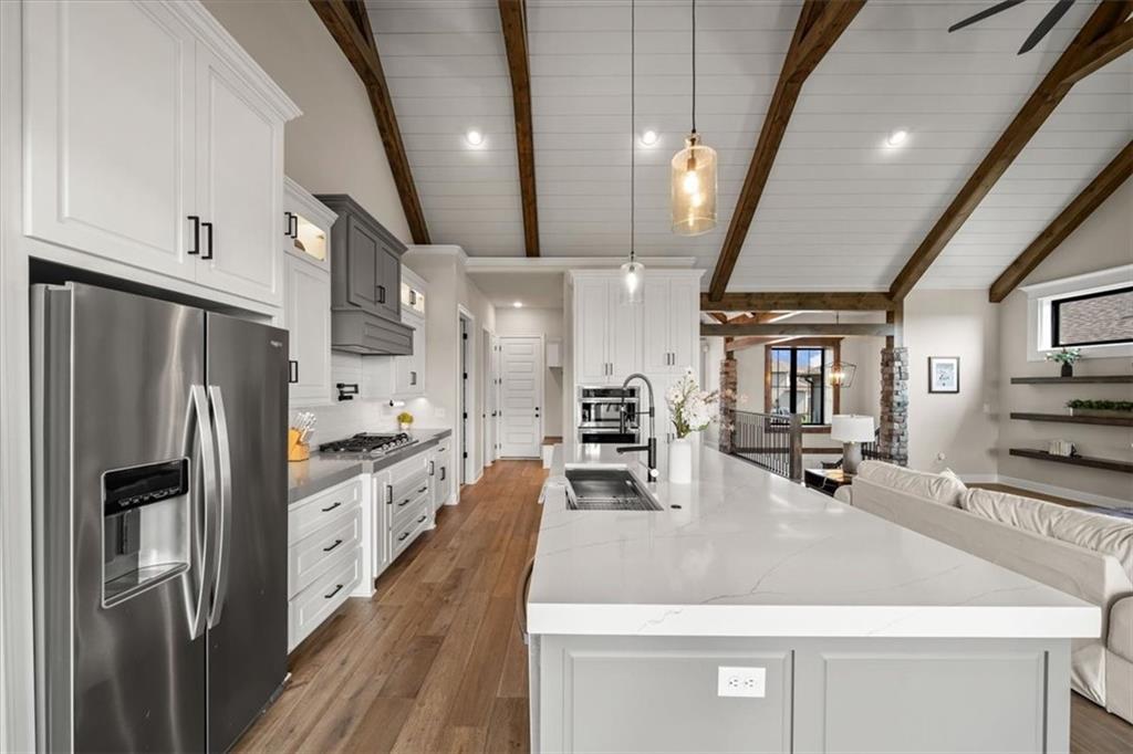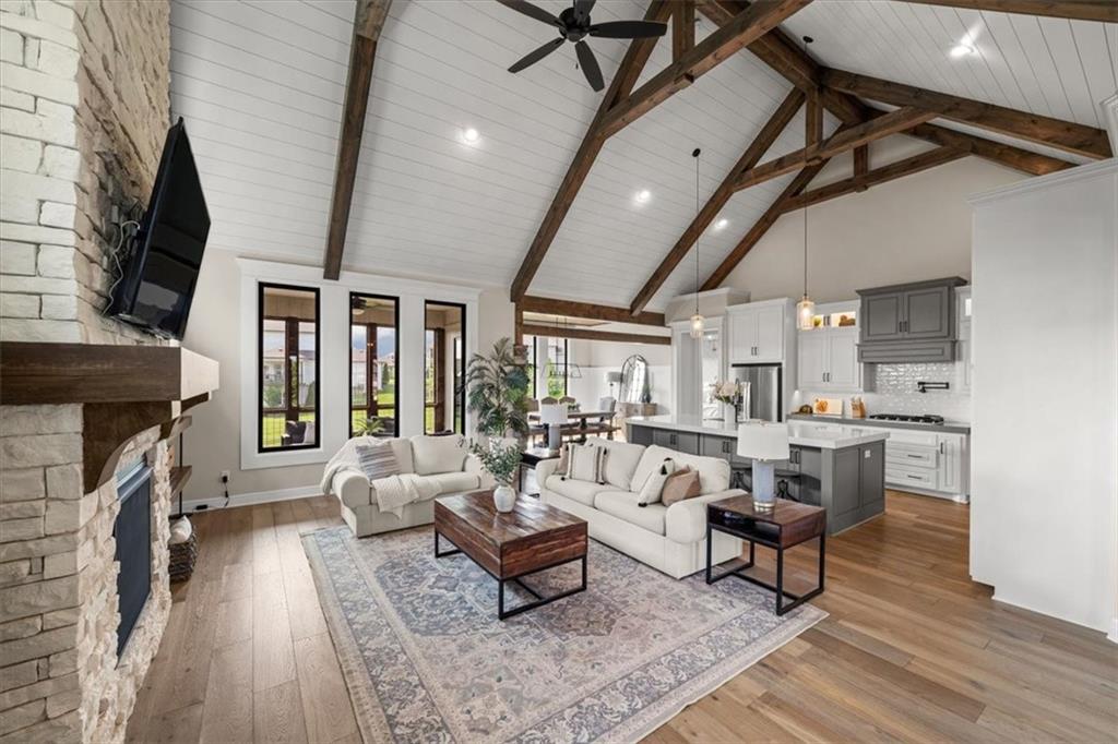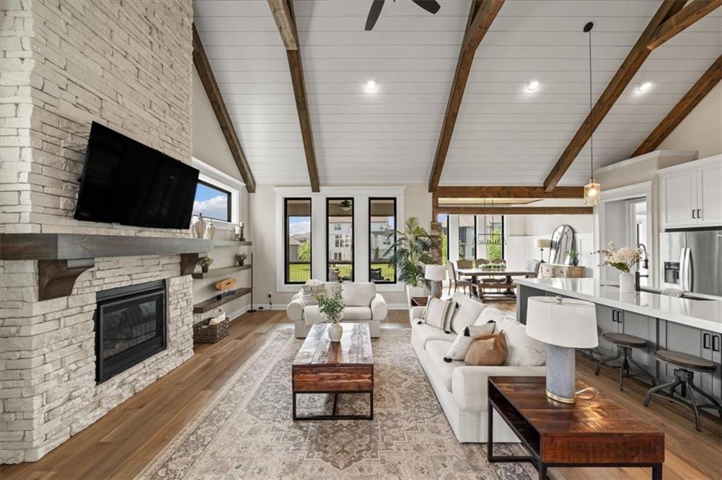 SELLER OFFERING $10K CREDIT to go towards buyers closing costs or RATE BUY DOWN!!! You can still move in before the holidays!!! MORE UPGRADES THAN NEW CONSTRUCTION. BUY NOW, MOVE IN TODAY, HOST TOMORROW. Why wait and pay more for new construction when this home delivers so much more. Enjoy custom window shades, a fully fenced yard, multiple outdoor patios with a firepit, and a screened-in composite deck, all on a quiet cul-de-sac with a large lot. Step inside this reverse one and a half story walkout in sought-after Winterset Valley, where upscale design meets everyday comfort. A dramatic stone-column entry and vaulted wood-beamed ceilings open to a bright, airy floor plan anchored by a striking stone fireplace. The gourmet kitchen features thick quartz countertops, a walk-in prep pantry, built-in workstation, custom mudroom, and designer finishes throughout. The main-level primary suite is a private retreat with vaulted ceilings, a spa-inspired bath, freestanding soaker tub, and a show-stopping walk-in closet. The lower level offers three additional bedrooms, a full bar, and a versatile flex space with sliding doors that works beautifully as a guest suite, gym, or home office. Outdoor living is unmatched with a covered screened-in deck featuring a built-in fireplace, a custom lower patio with firepit, and a spacious yard designed for entertaining. Located minutes from Longview Lake, golf, dining, shops, and the Rock Island Trail, with access to award-winning Lee’s Summit schools. Better than new, fully upgraded, move-in ready, and now priced to sell — this is the one you have been waiting for.